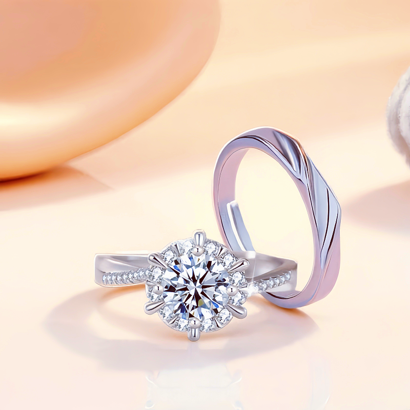 六爪扭臂镶嵌钻戒女仿真结婚戒指一对星织款对戒假求婚仪式道具男