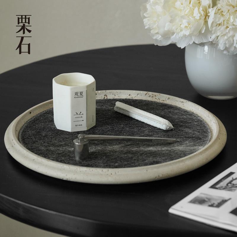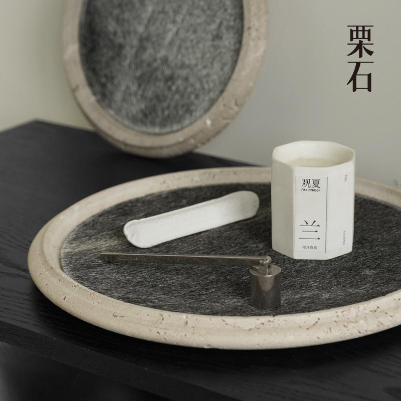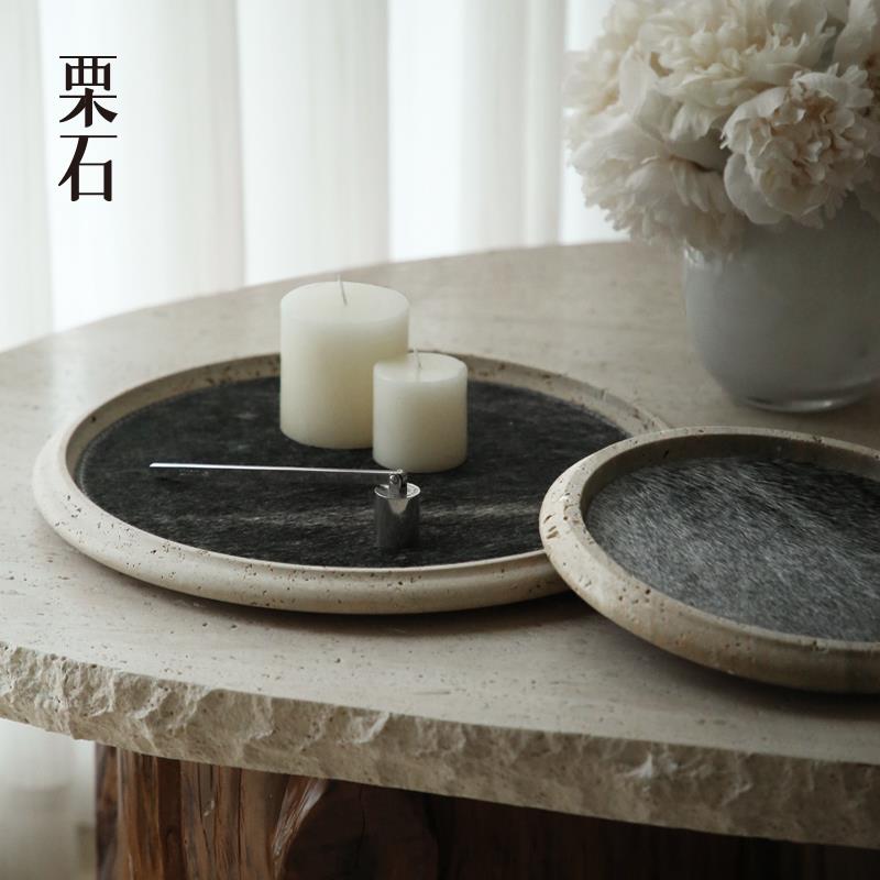 栗石轻奢高级感香薰托盘摆件衣帽间茶几桌面洞石马毛首饰收纳盘