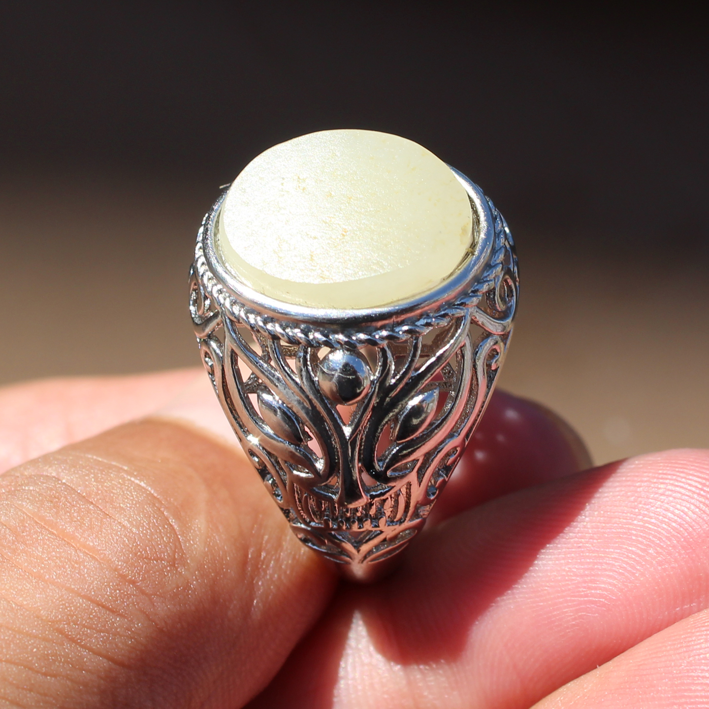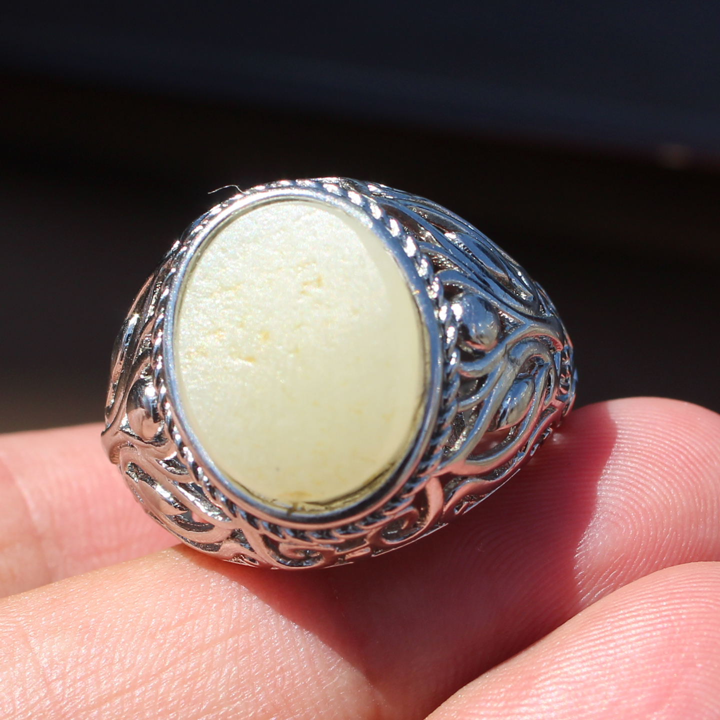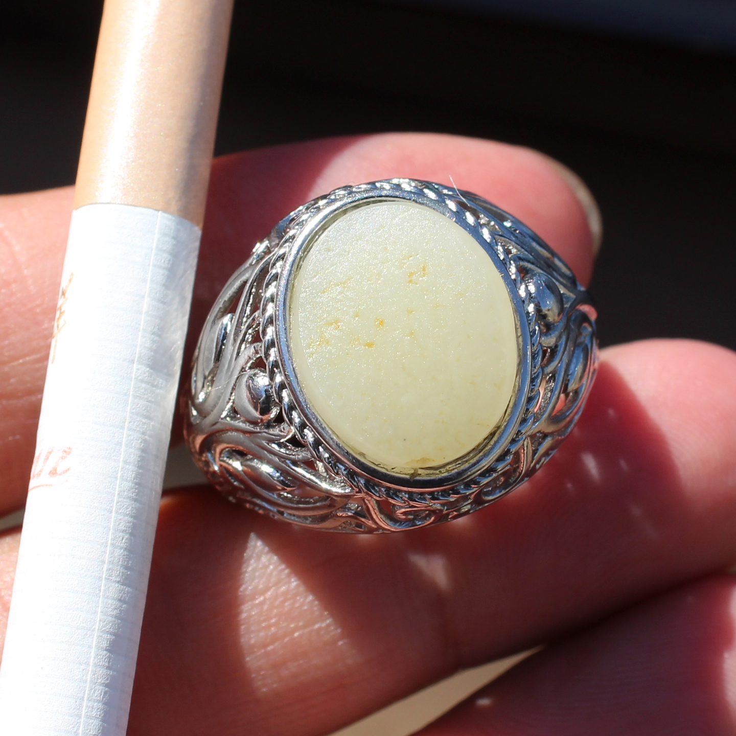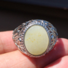 嗨翻天方言和田玉精品特色新疆洒金皮无结构白玉银镶钳戒指扳指A1