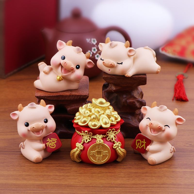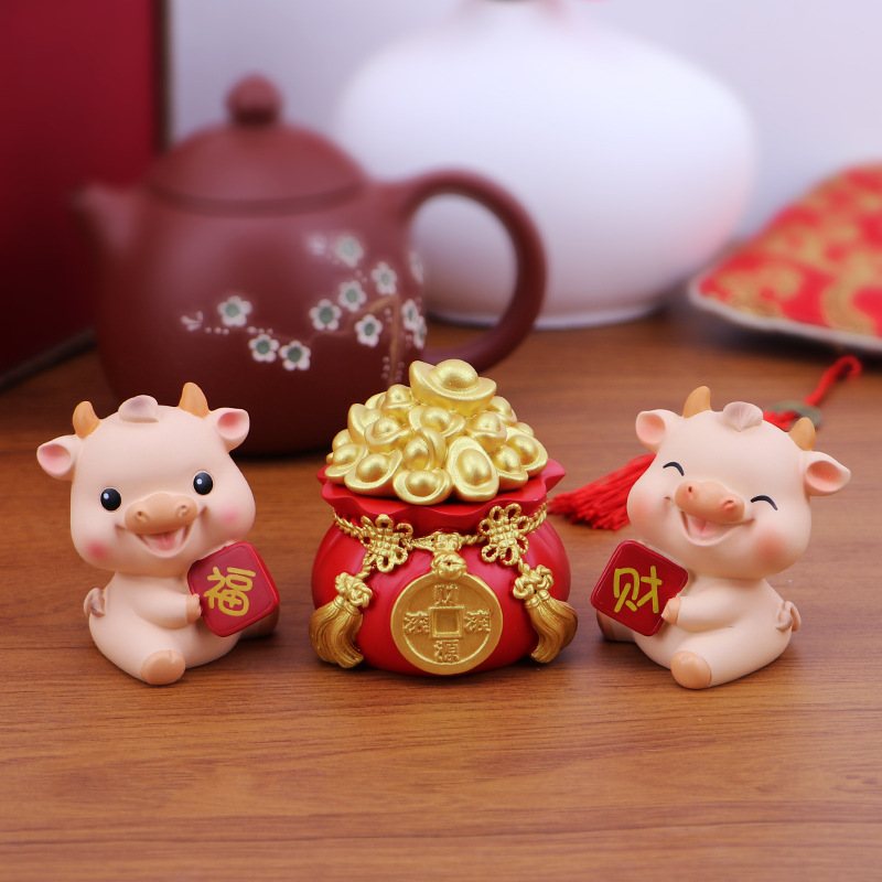 招财纳福小牛宝摆件家居办公室内摆设桌面生肖装饰汽车饰品客厅车