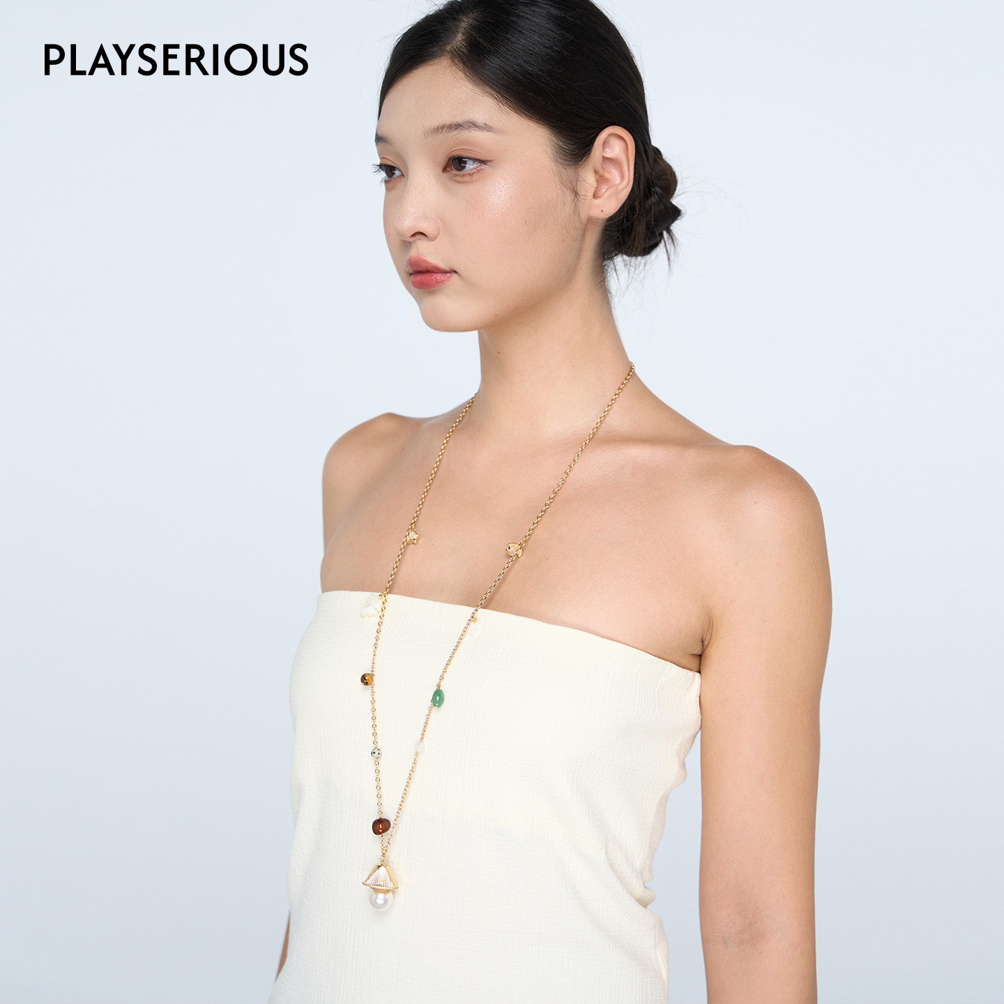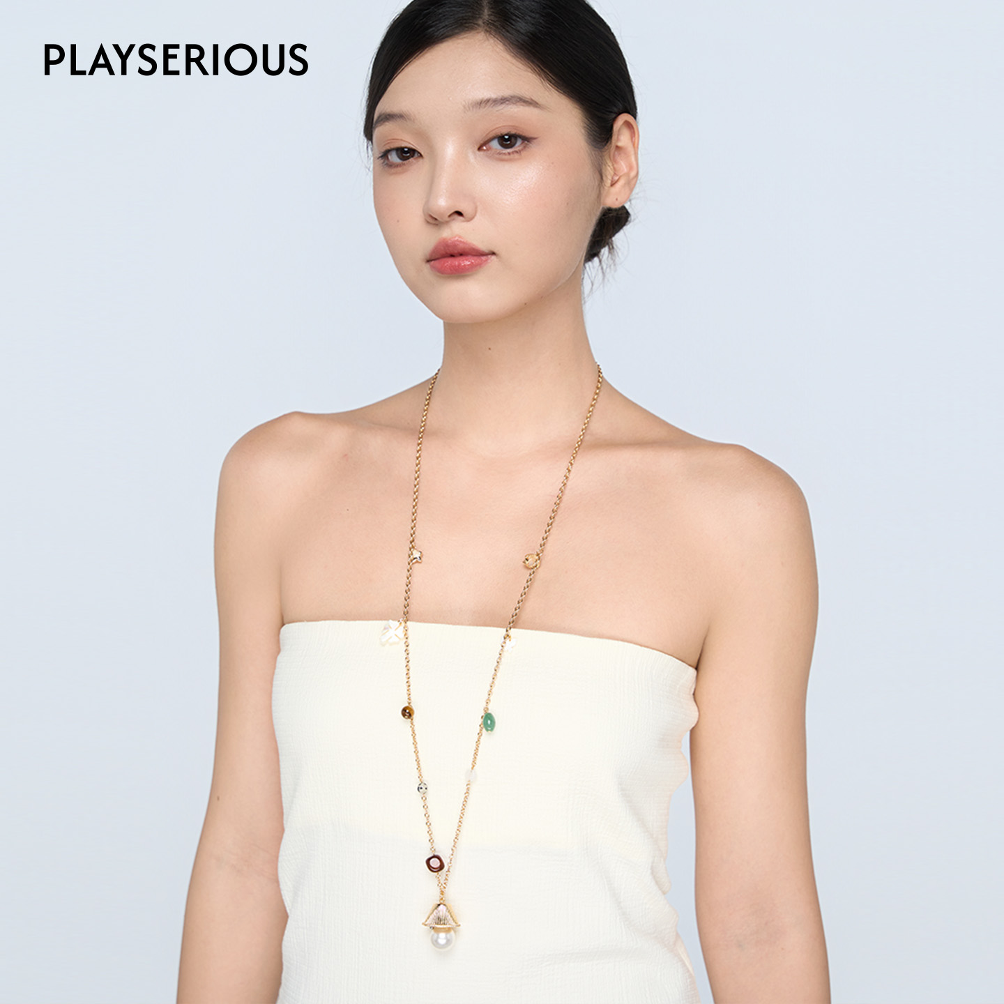 Blingkolio 2025秋冬新款天然石串珠台灯吊坠毛衣链个性简约项链