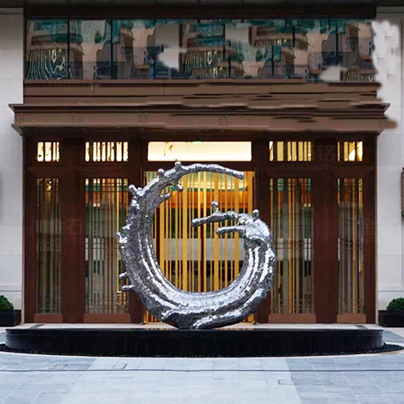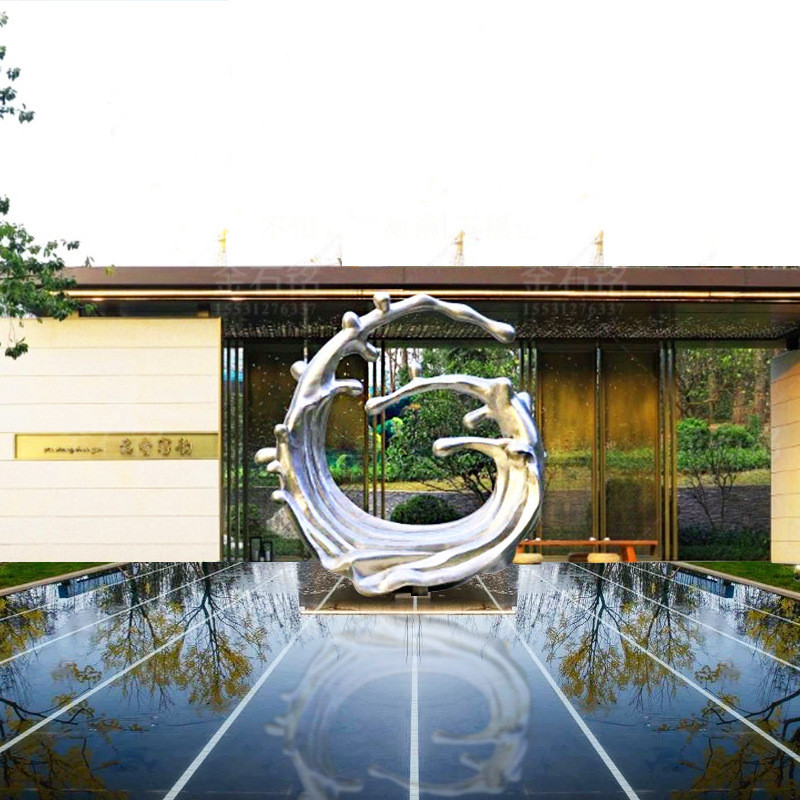 不锈钢浪花雕塑售楼部户外现代抽象镜面金属水滴水池水花景观