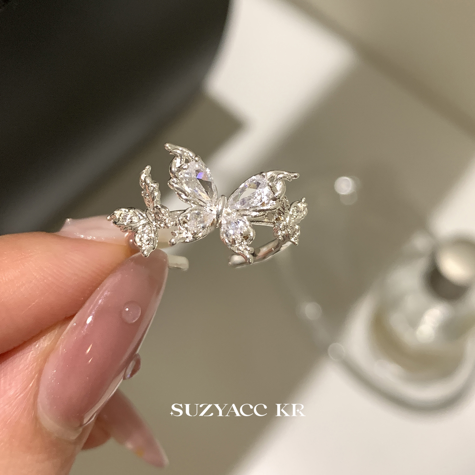 suzyacc kr轻奢小众蝴蝶水钻戒指温柔气质高级食指戒简约百搭指环