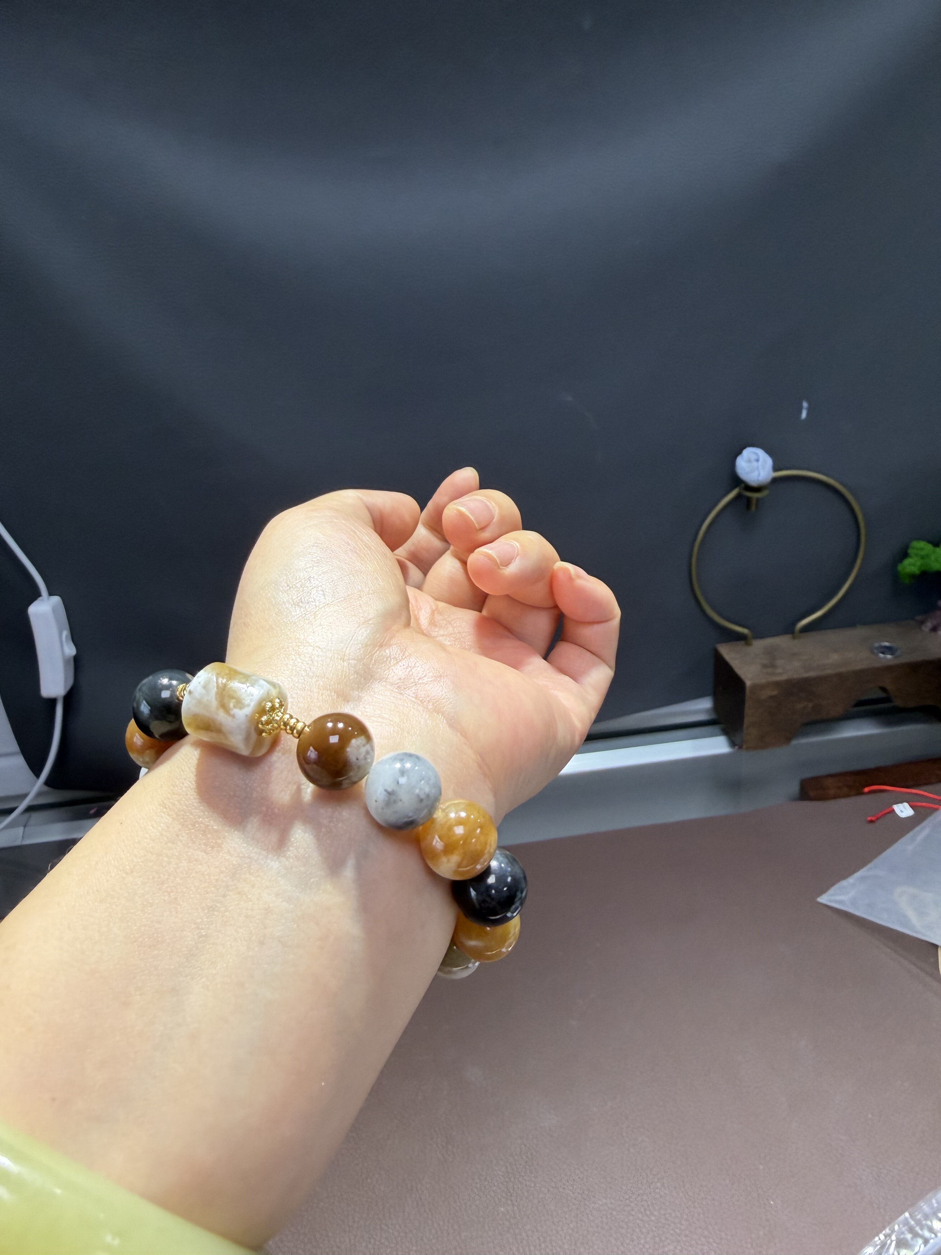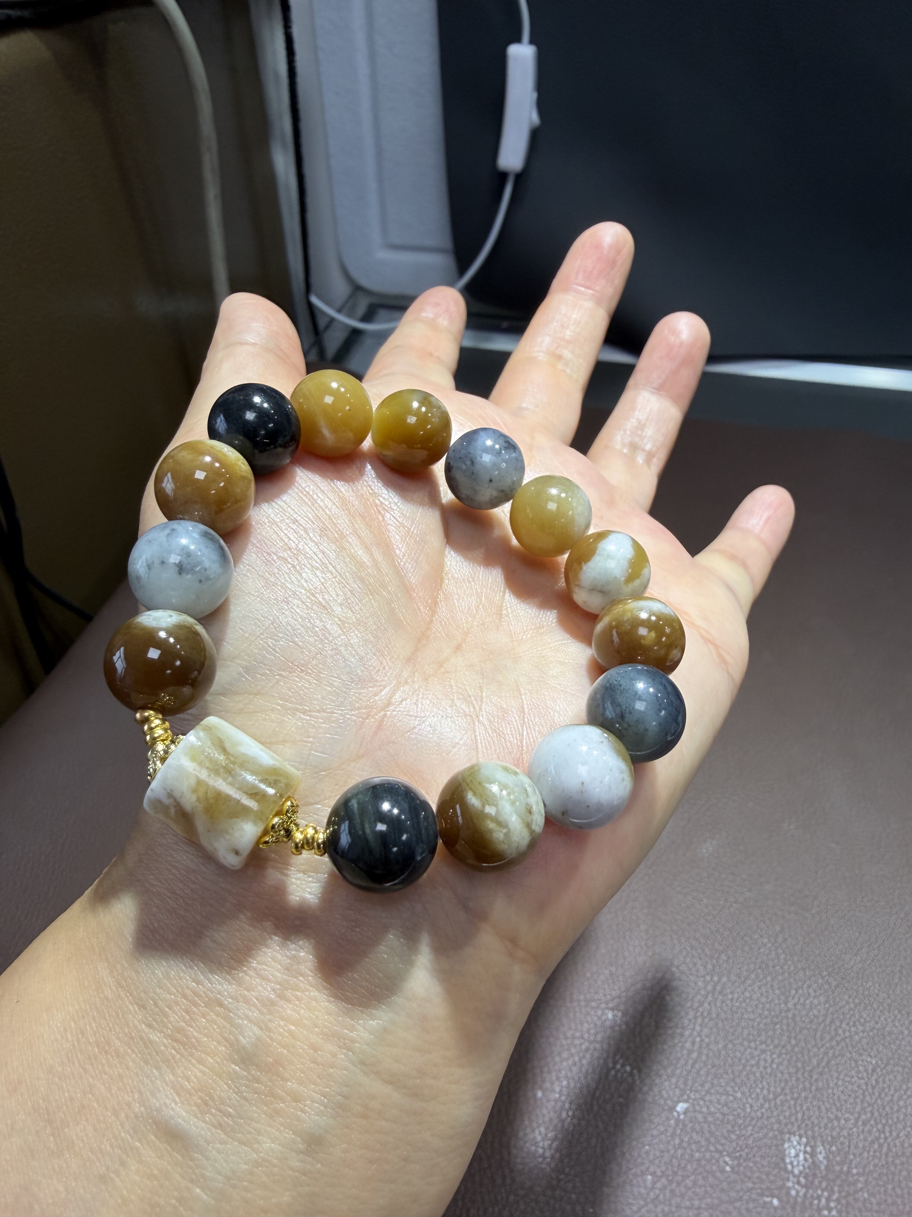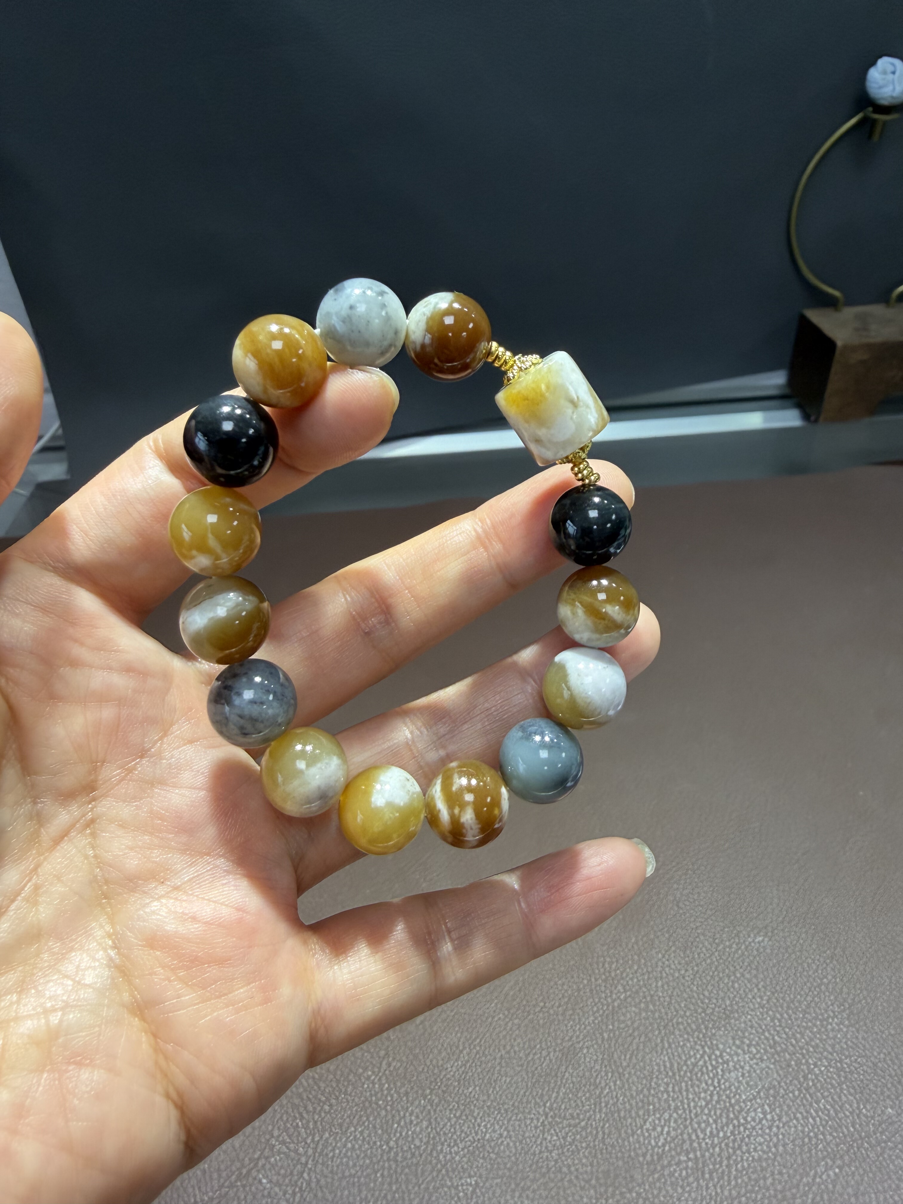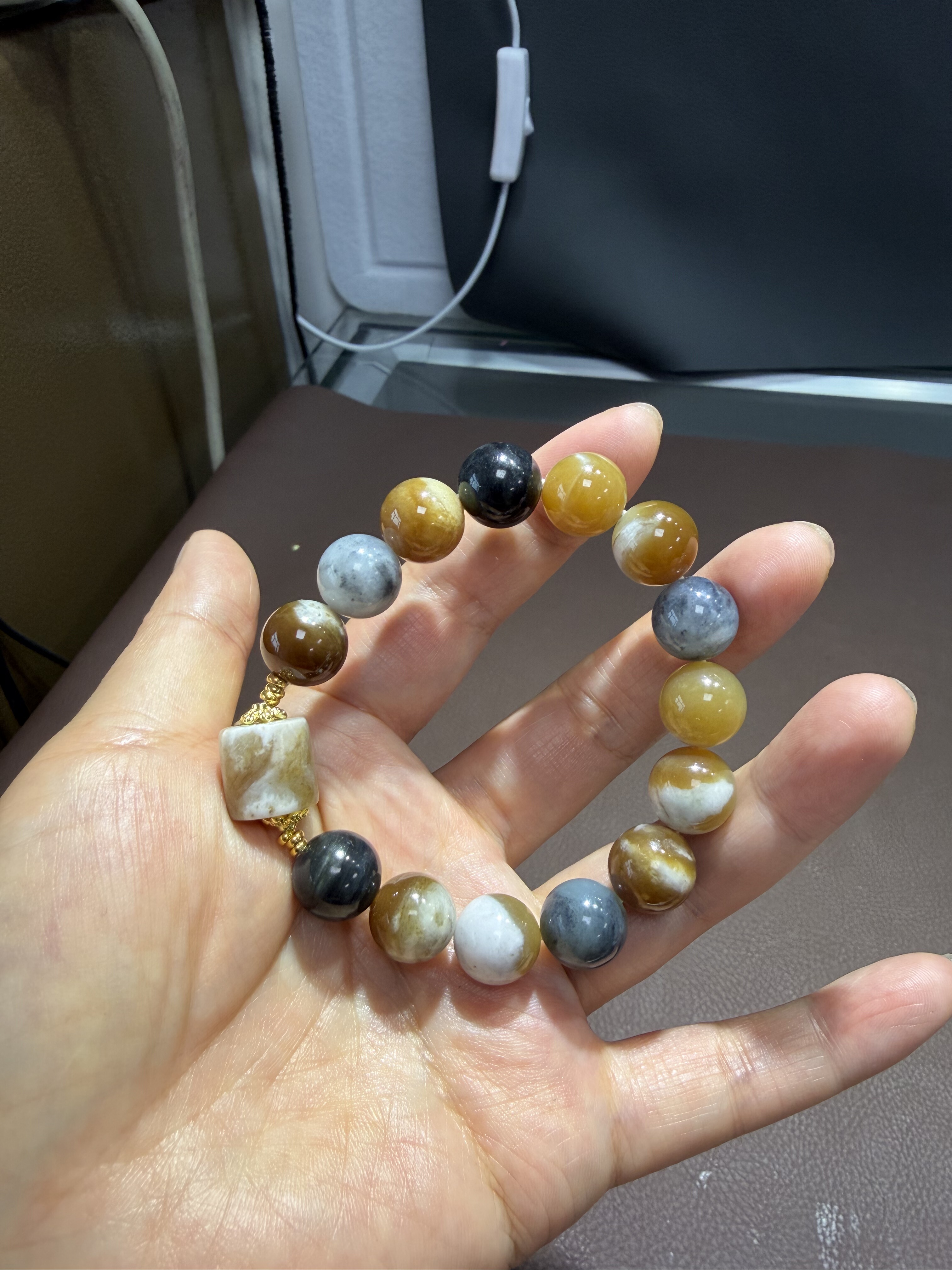 天然新疆和田玉楼兰三色牛轧糖手串12mm玉石手链女款手串533号
