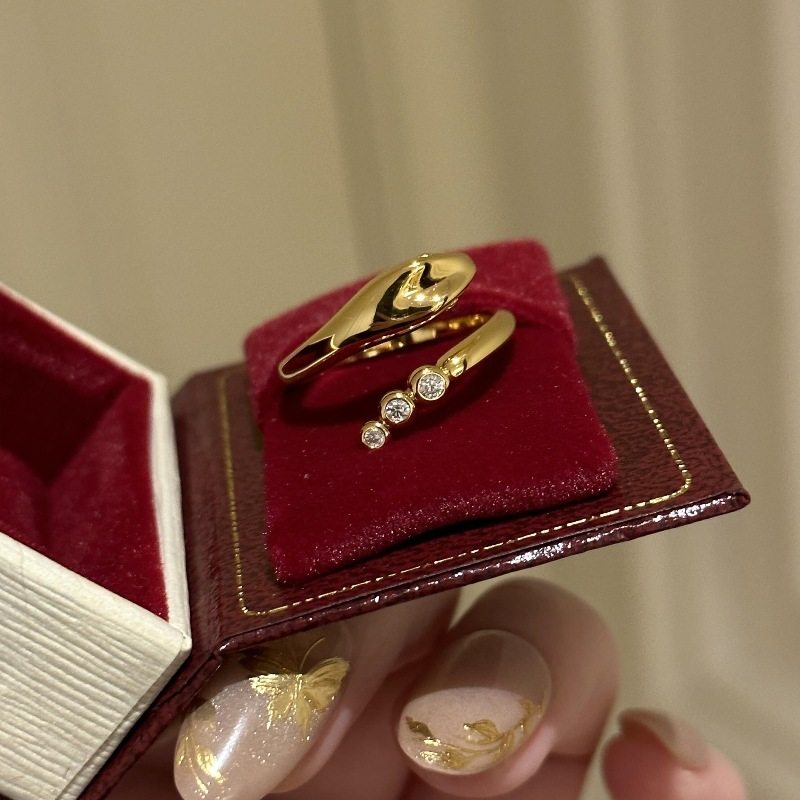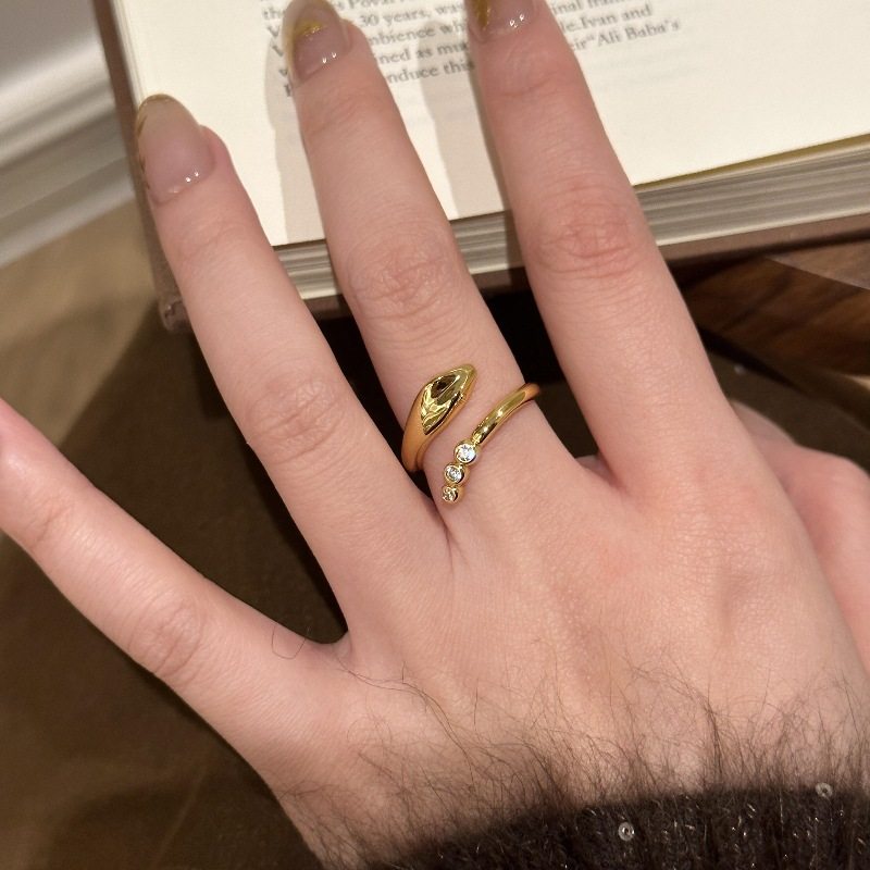 轻奢高级感简约响尾小金蛇戒指镶嵌锆石不对称设计百搭复古食指戒