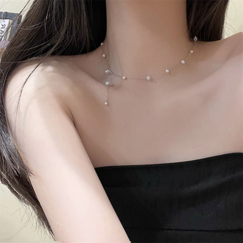 满天星珍珠项链女轻奢小众2025新款爆款毛衣链高级感脖颈带锁骨链
