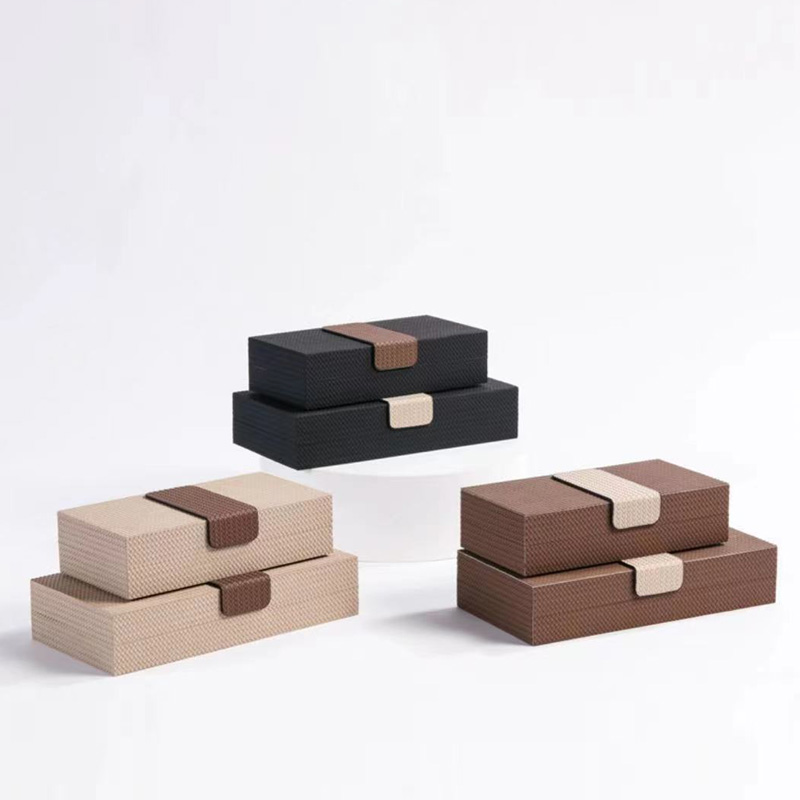 现代简约轻奢皮质编织纹首饰盒收纳摆件家居样板间酒店卧室装饰盒