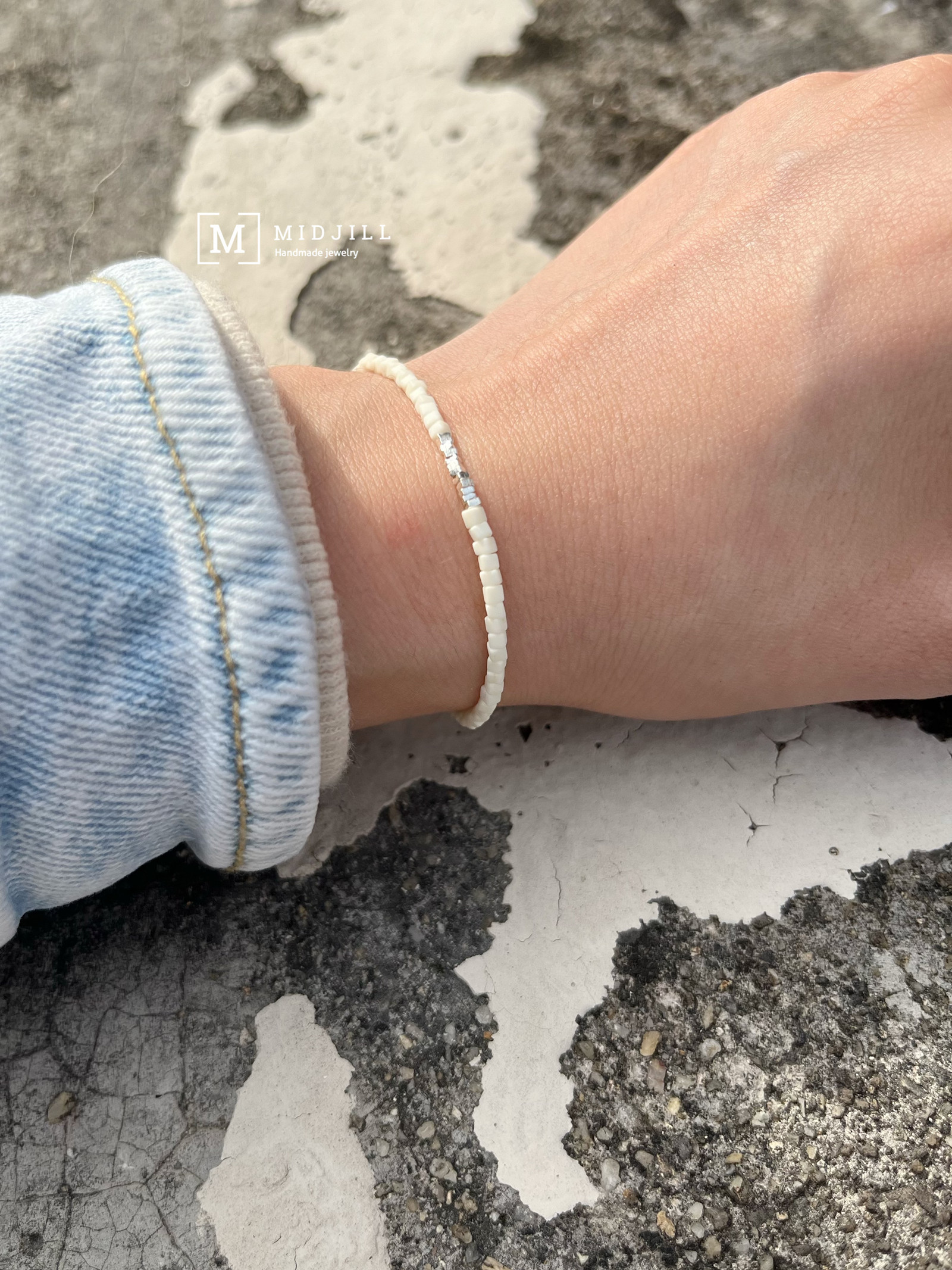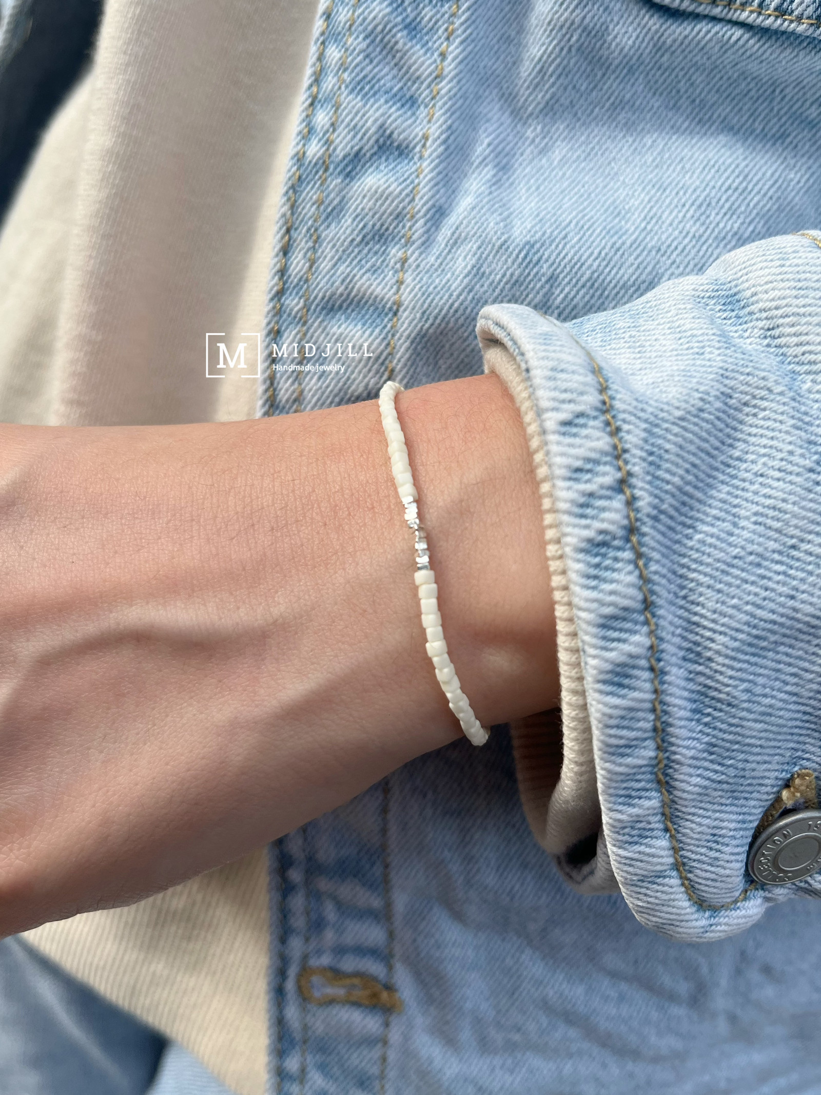 新品限量 欧美小众低调方形磨砂质感白色拼接925银手工编织手链