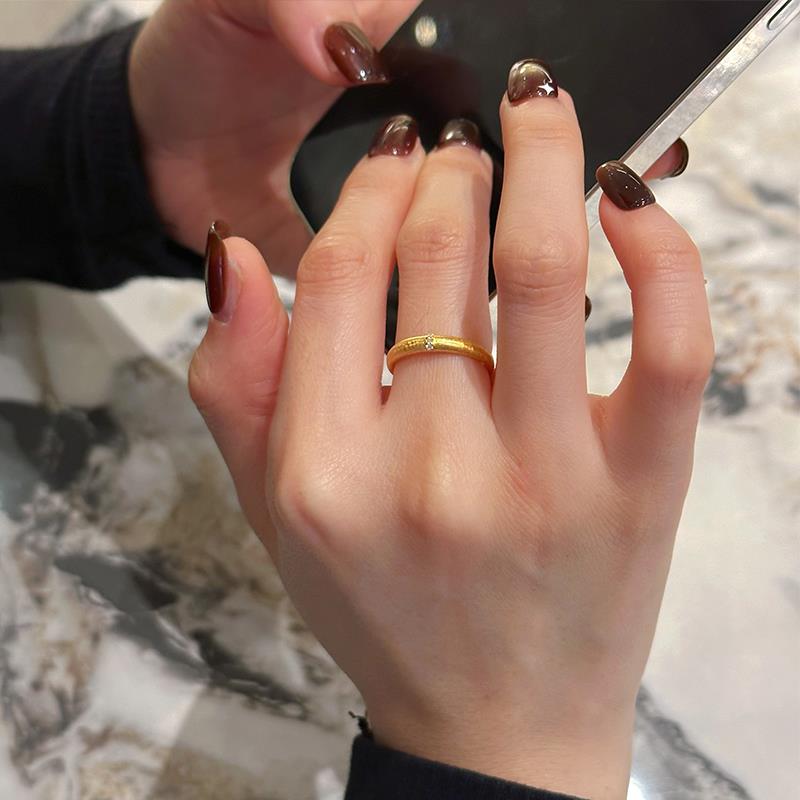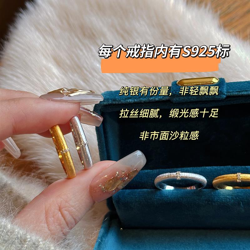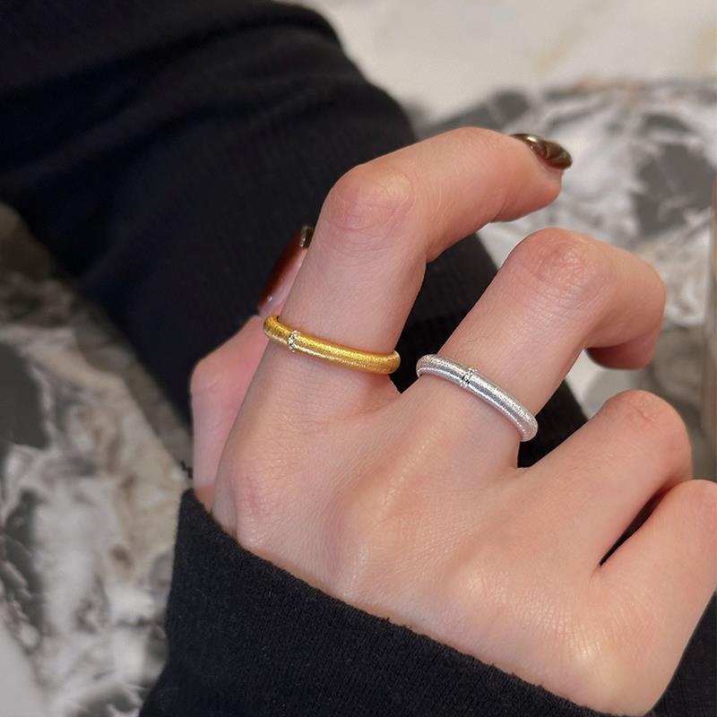 小众设计中古金银色复古拉丝镶钻素圈戒指女轻奢手饰