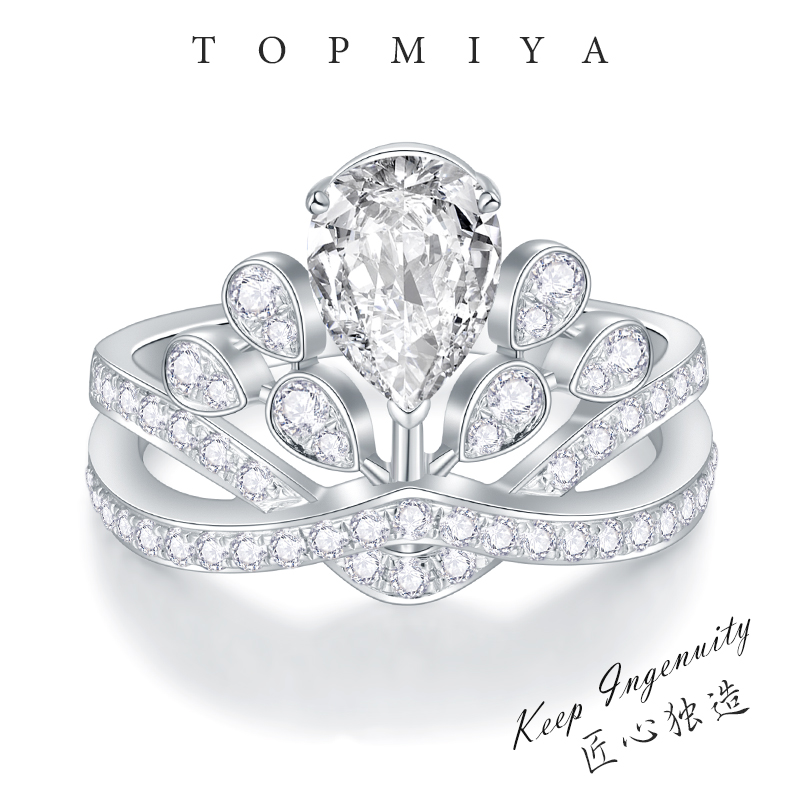 TopMiya【培育】18K金皇冠钻戒水滴形人工钻石一克拉显大钻戒高贵