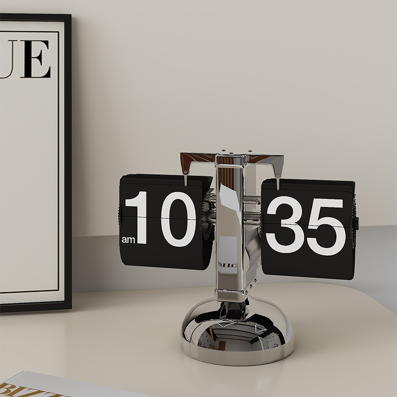 艺贝子高档不锈钢自动翻页机械时钟日历钟数字座钟桌面轻奢装饰品