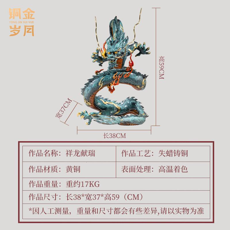 《祥龙献瑞》铜金岁月全黄铜龙摆件新中式铜器家居客厅桌面装饰品