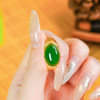 当前位置:首页>商品详情>洛丽亚洛丽亚精致镂空设计银镶嵌天然和田玉碧玉菠菜绿蛋面戒指