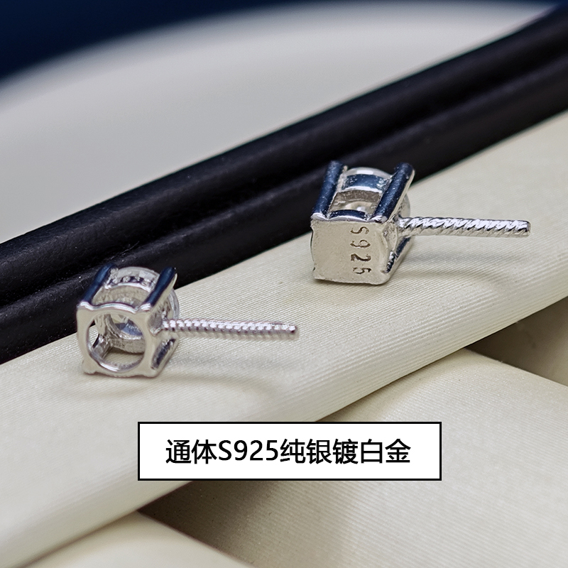 S925纯银吊坠头珍珠吊坠空托项链配件半成品饰品坠子镀白金防过敏
