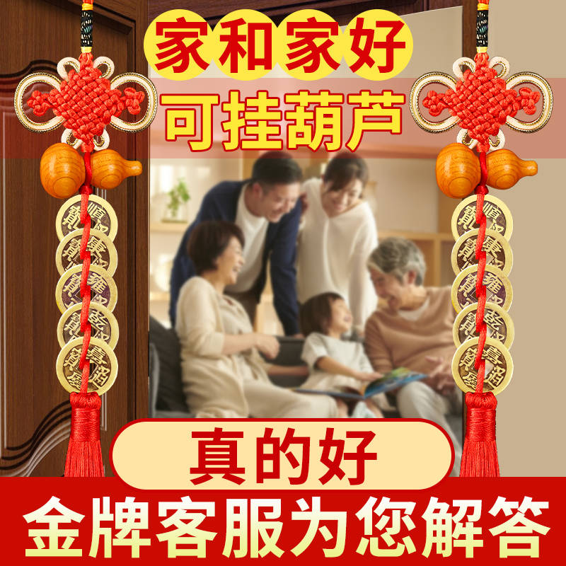 五帝钱门对门桃木葫芦挂件开口真品铜钱大门厕所门口中国结压门槛