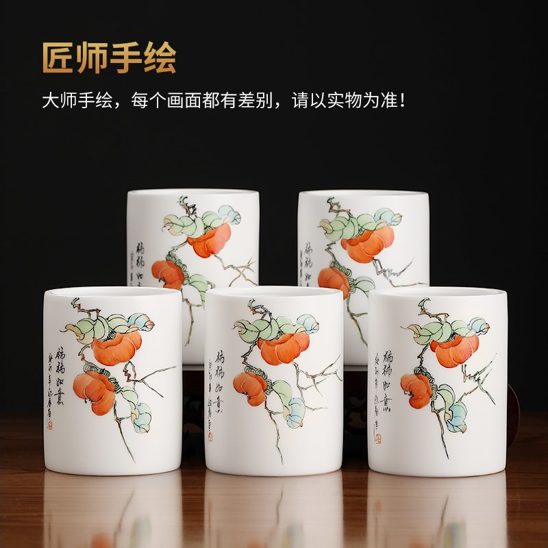 《事事如意》g陶瓷手绘柿子笔筒摆件中国风毕业实用礼物送老师纪