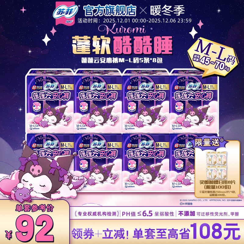 【囤货装】sofy/苏菲裤型卫生巾超熟睡夜用兔子安心裤组合40条