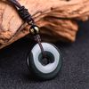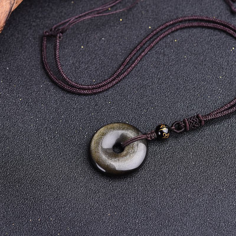 天然黑曜石平安扣吊坠男女黑色吊坠编织钥匙扣挂件饰品转运保平安