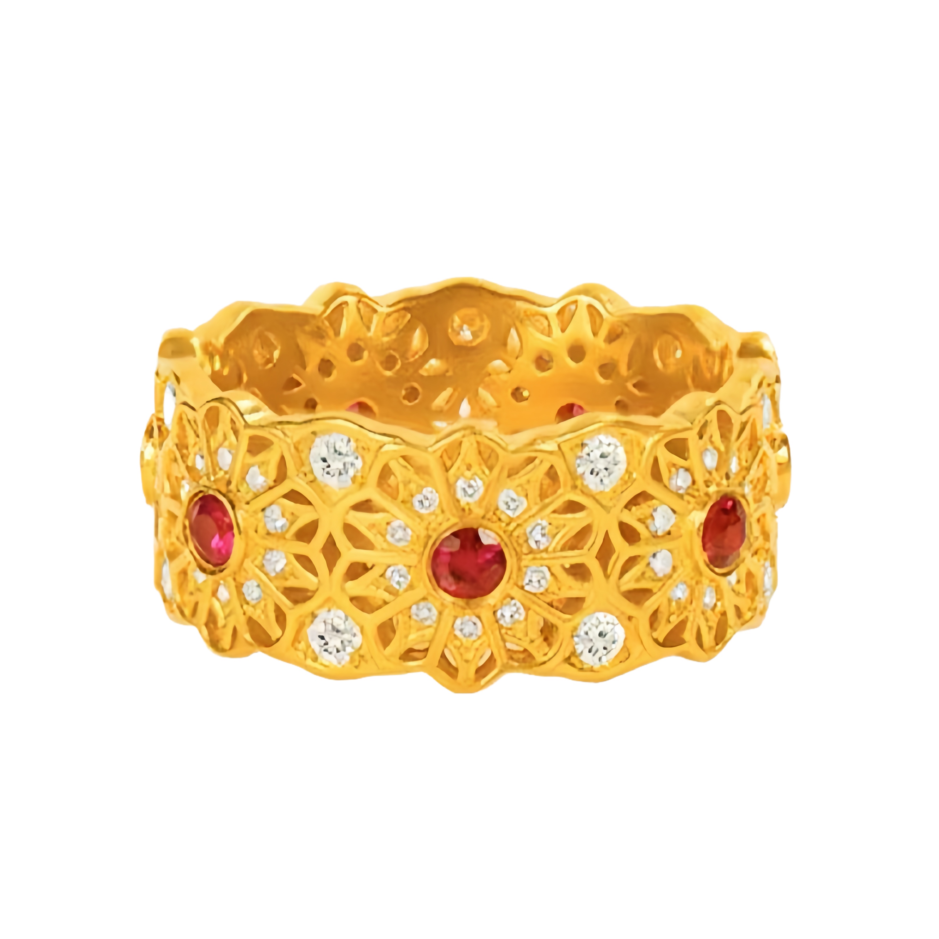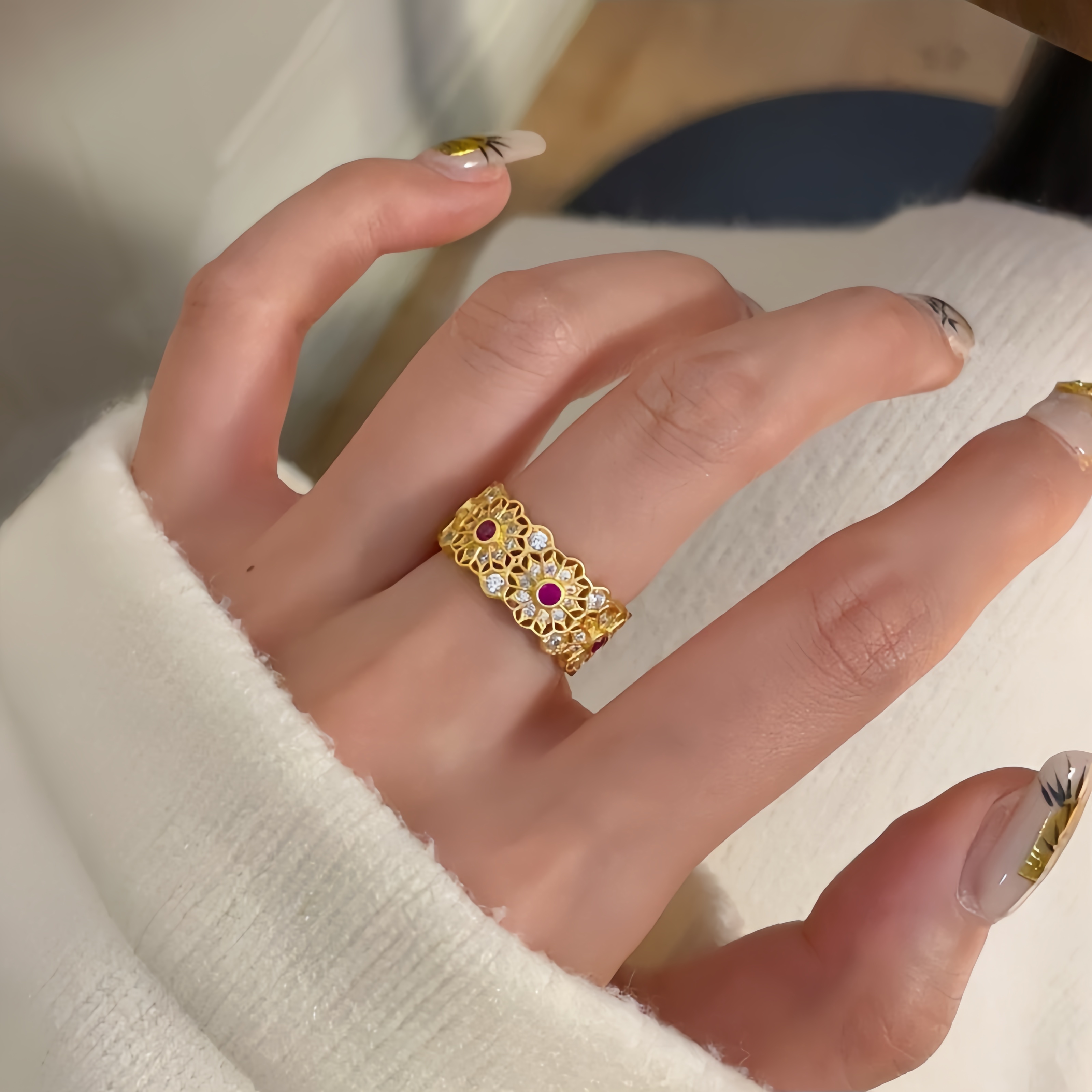 老铺古法黄金包银玫瑰花窗戒指女镂空镶钻黄金指环送女友七夕礼物