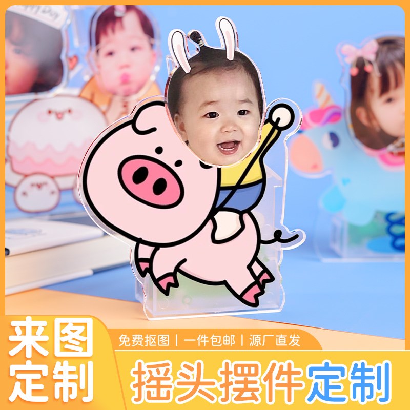 宝宝自动摇摇乐摆件定制diy电动亚克力摇头立牌情侣头像桌面摇晃