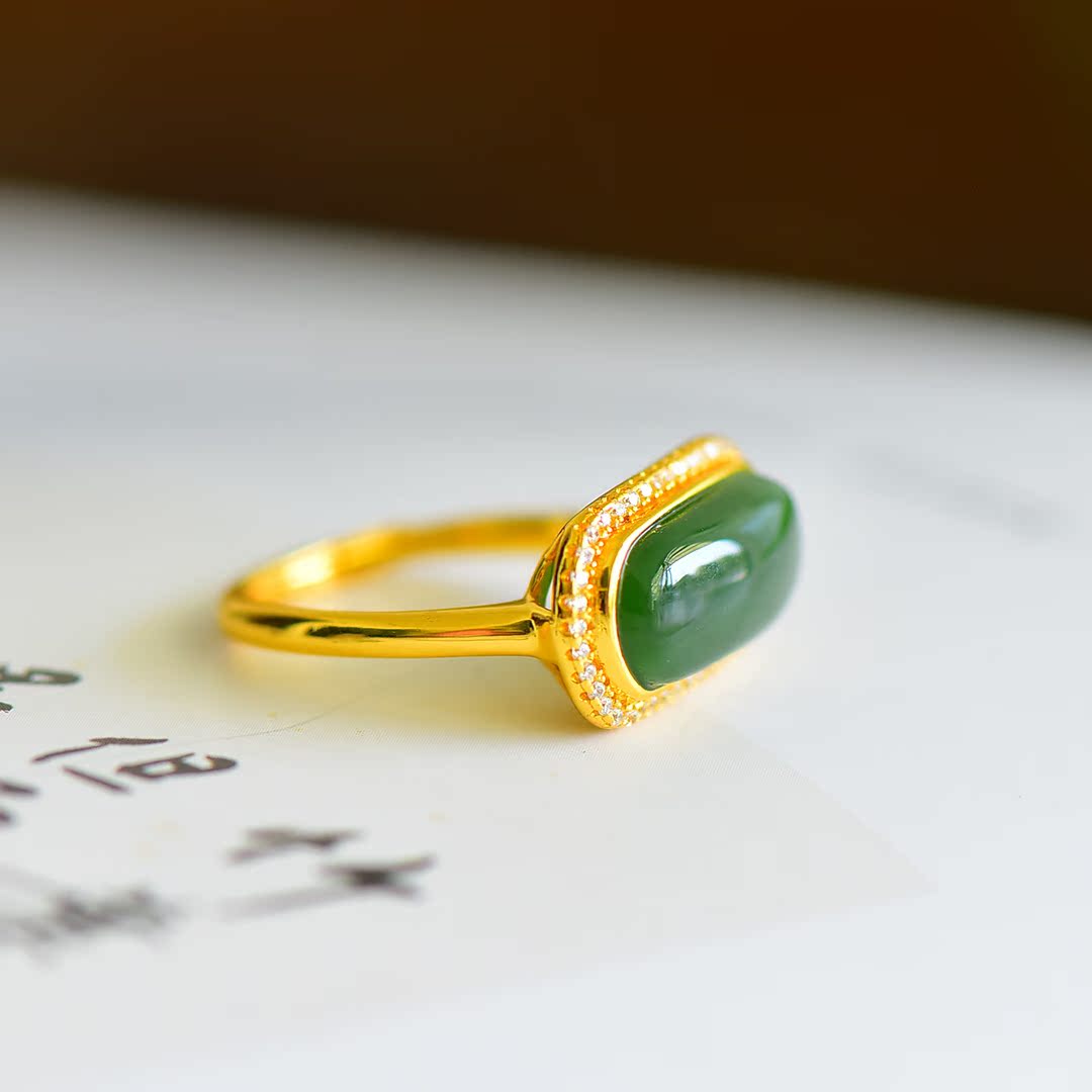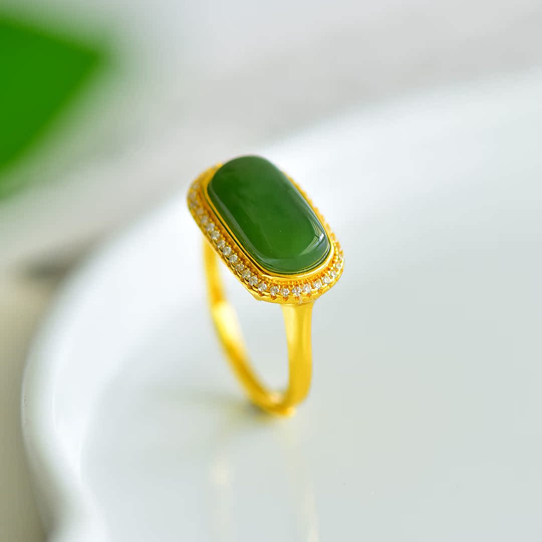 s925银镶嵌新疆和田玉碧玉马鞍玉戒戒指男女时尚指环戒圈饰品