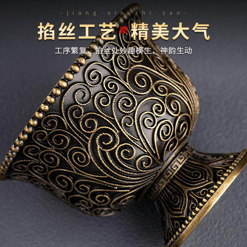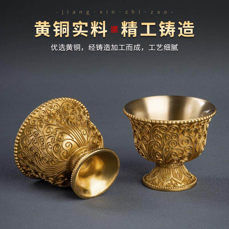 黄铜手工掐丝供水杯供佛水杯观音佛杯家用佛前水杯净水敬神碗高脚