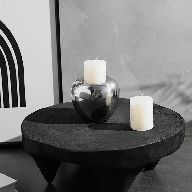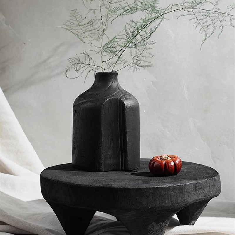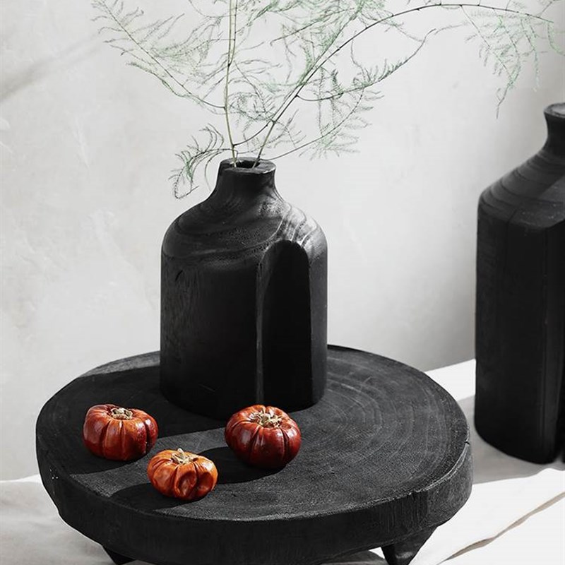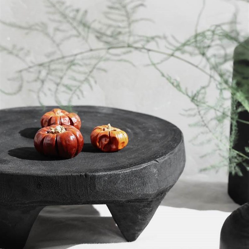 侘寂风小茶盘圆形黑色矮脚木平盘实木样板间装饰托盘摆件民宿客厅