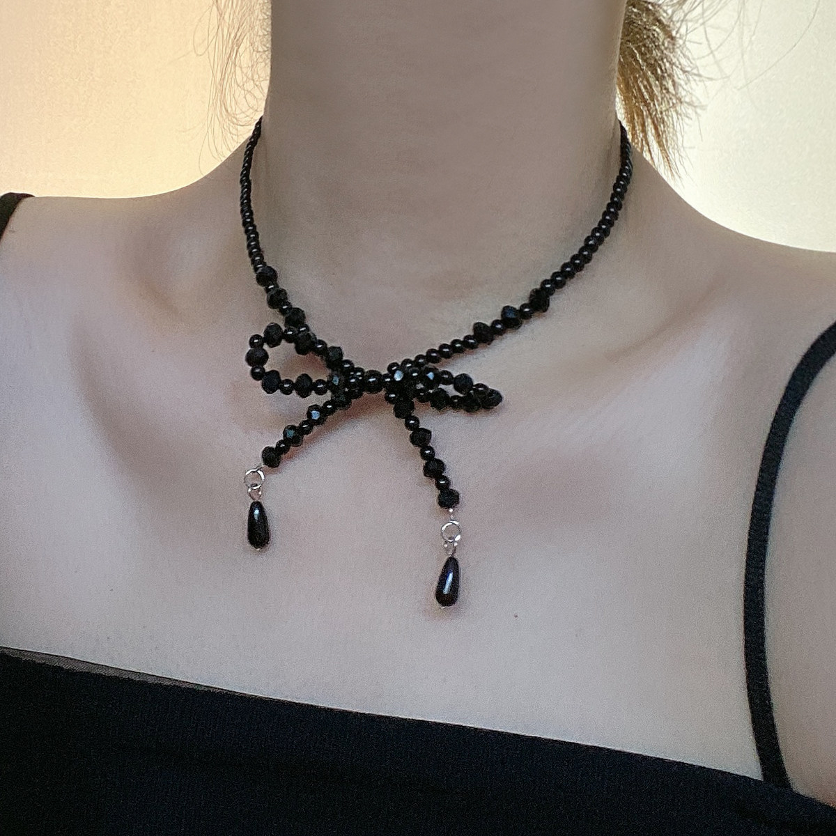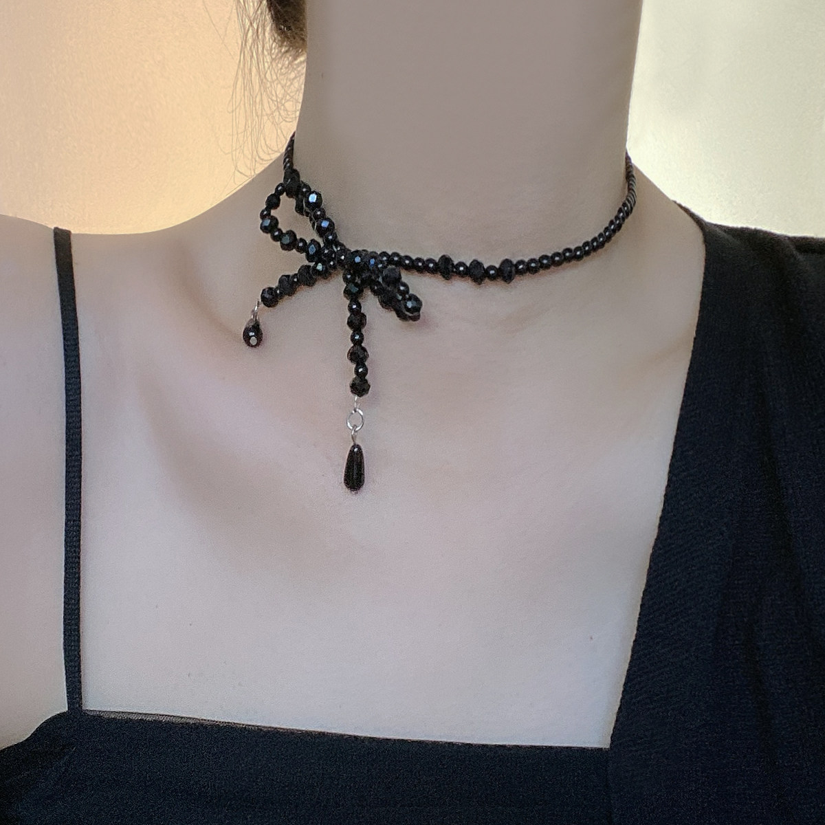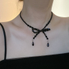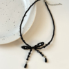 黑色水晶串珠蝴蝶结简约锁骨链短款项链女复古时尚气质个性颈链潮