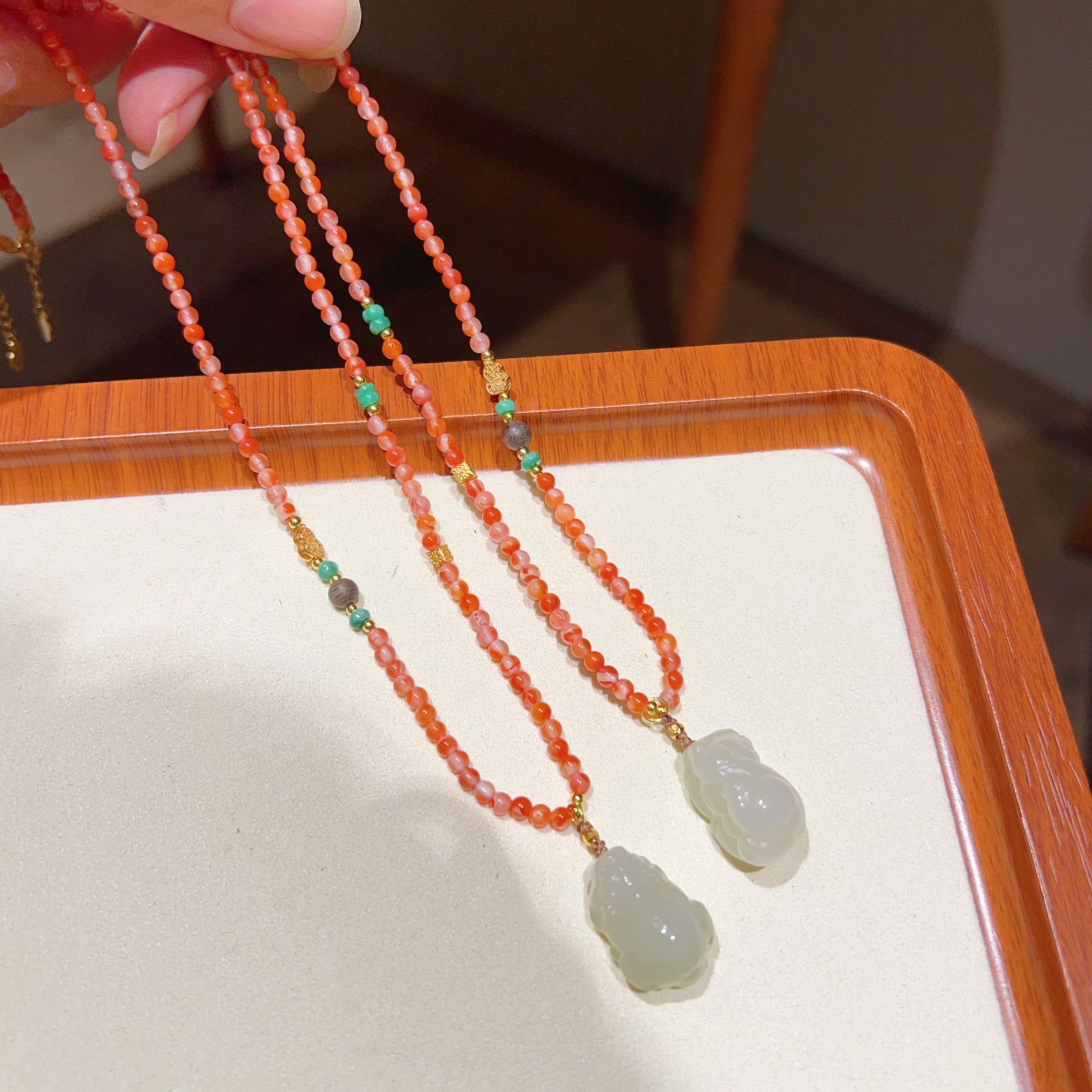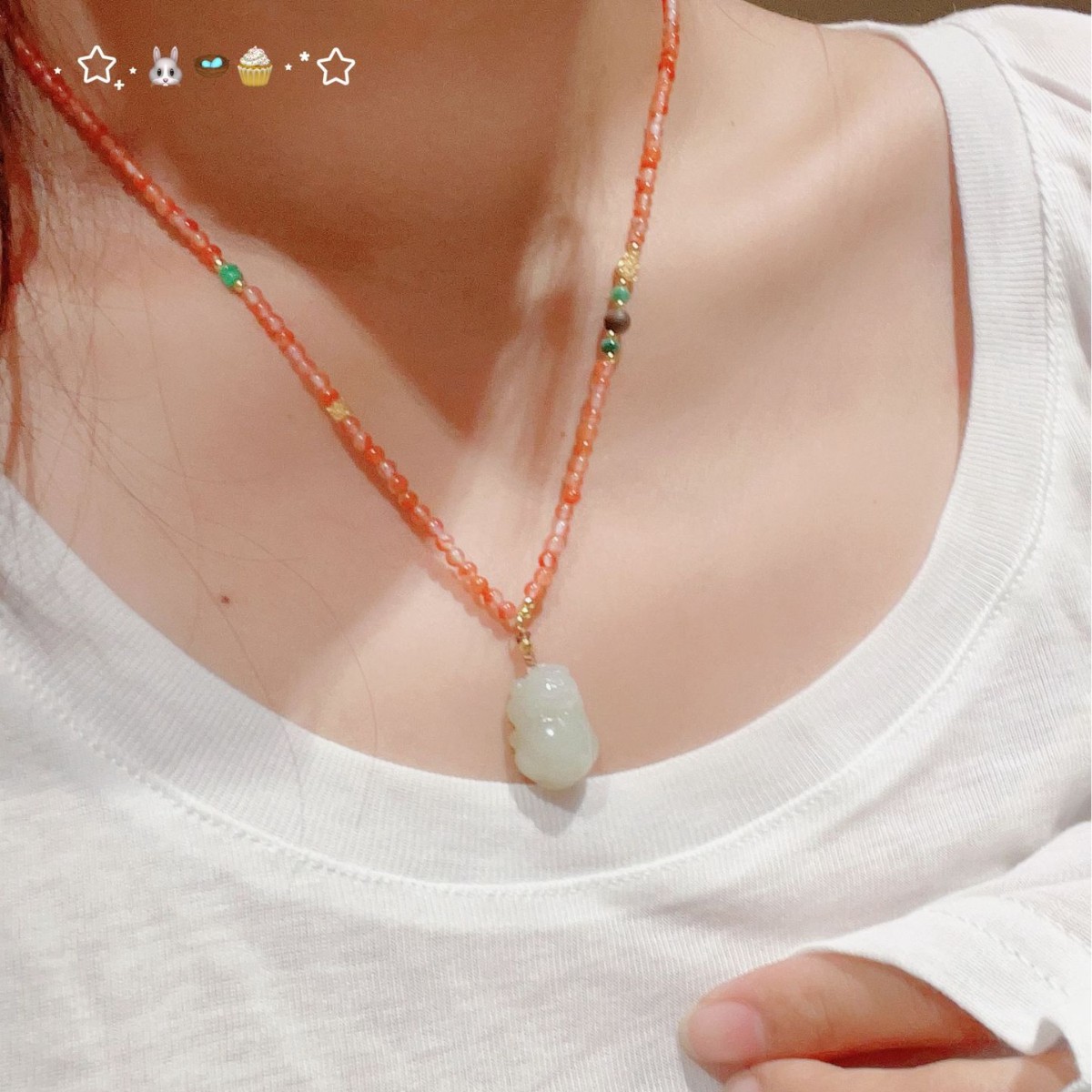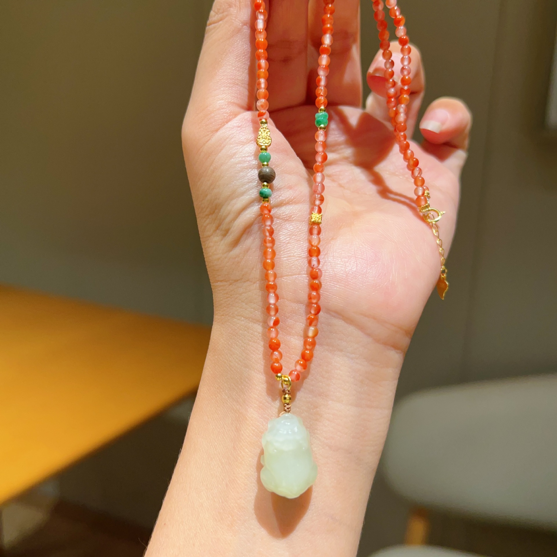 特价跑量款 招财貔貅 天然和田玉貔貅项链搭配冰飘南红设计款挂链