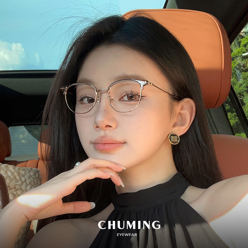冷茶色超轻钛架斯文半框眼镜近视女可配度数小脸素颜小框眼睛镜架