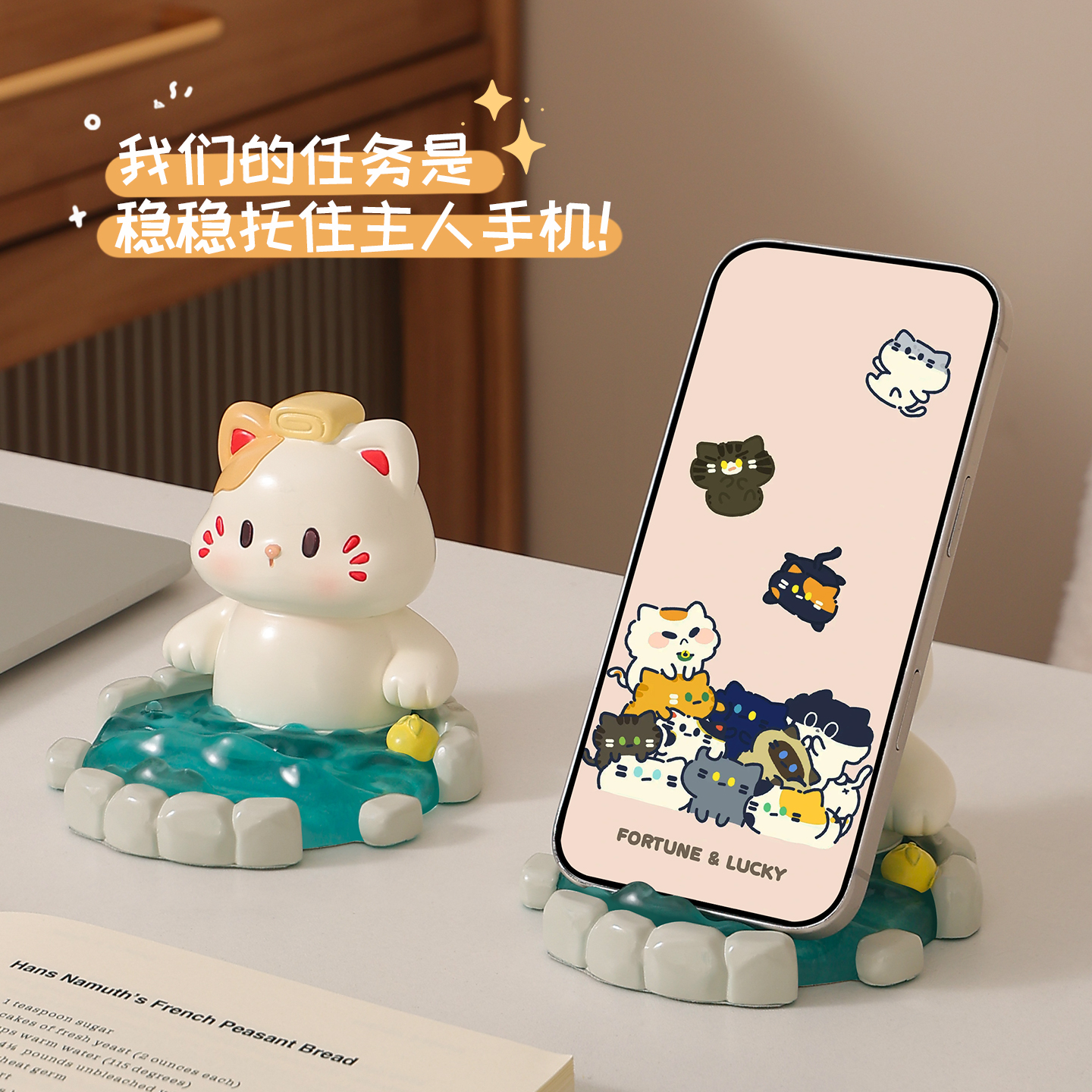 可爱小猫手机支架办公室桌面创意摆件眼镜架工位情绪稳定生日礼物