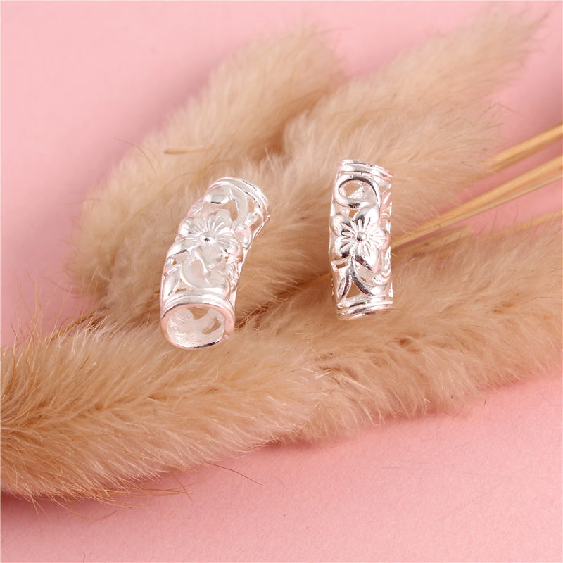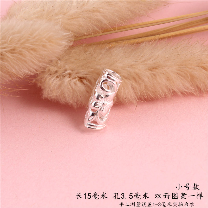 足银999 纯银弯管 吊坠 花朵挂坠管子编织手链diy银饰品串珠配件