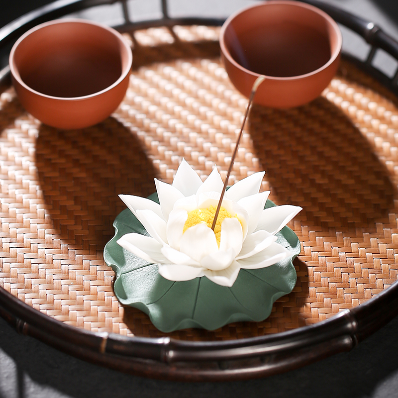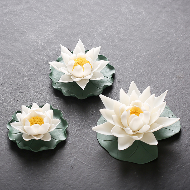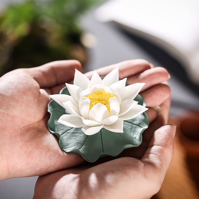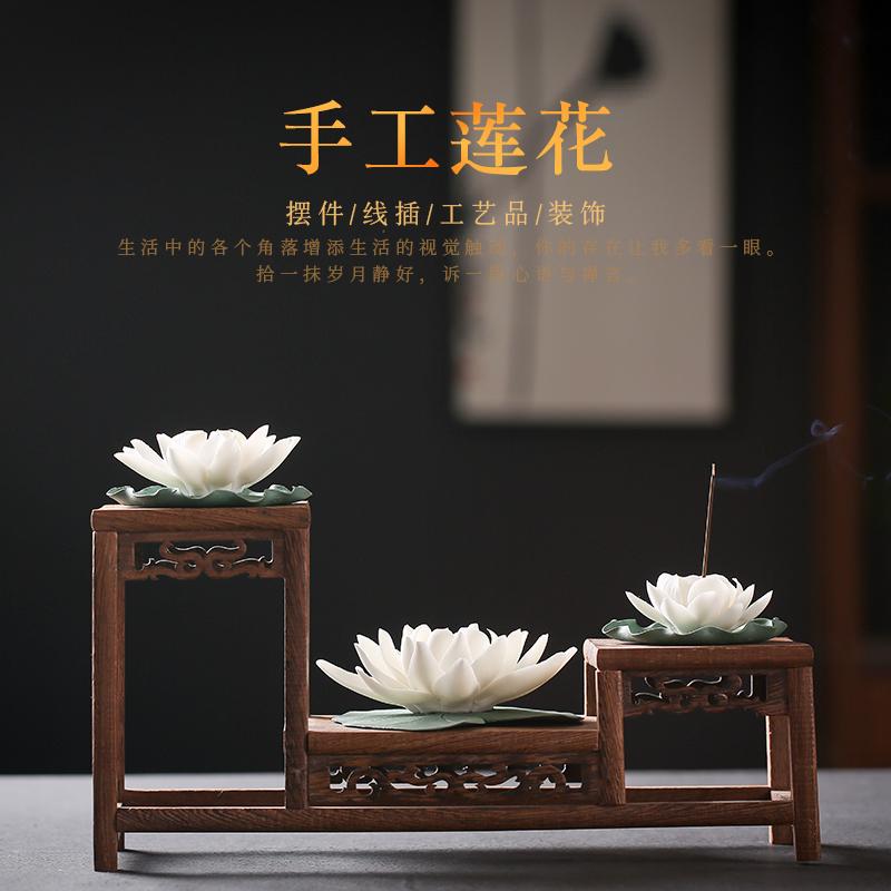 新中式创意纯手工陶瓷捏花摆件工艺品个性家居装饰品莲花桌面摆件