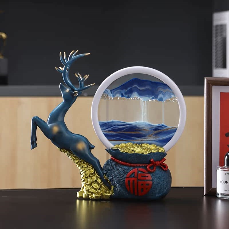 新中式福鹿生财流沙画摆件客厅装饰品公司店铺前台工艺品开业礼物