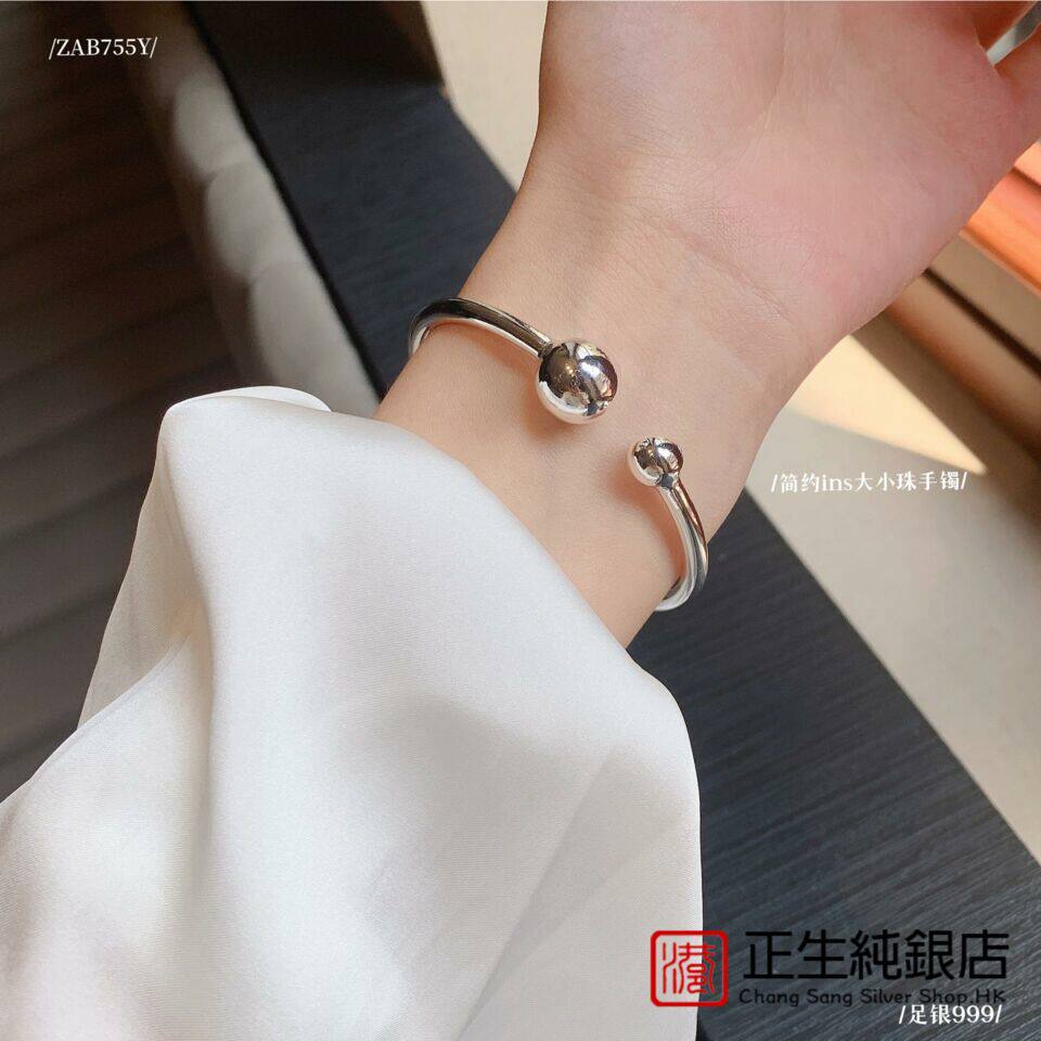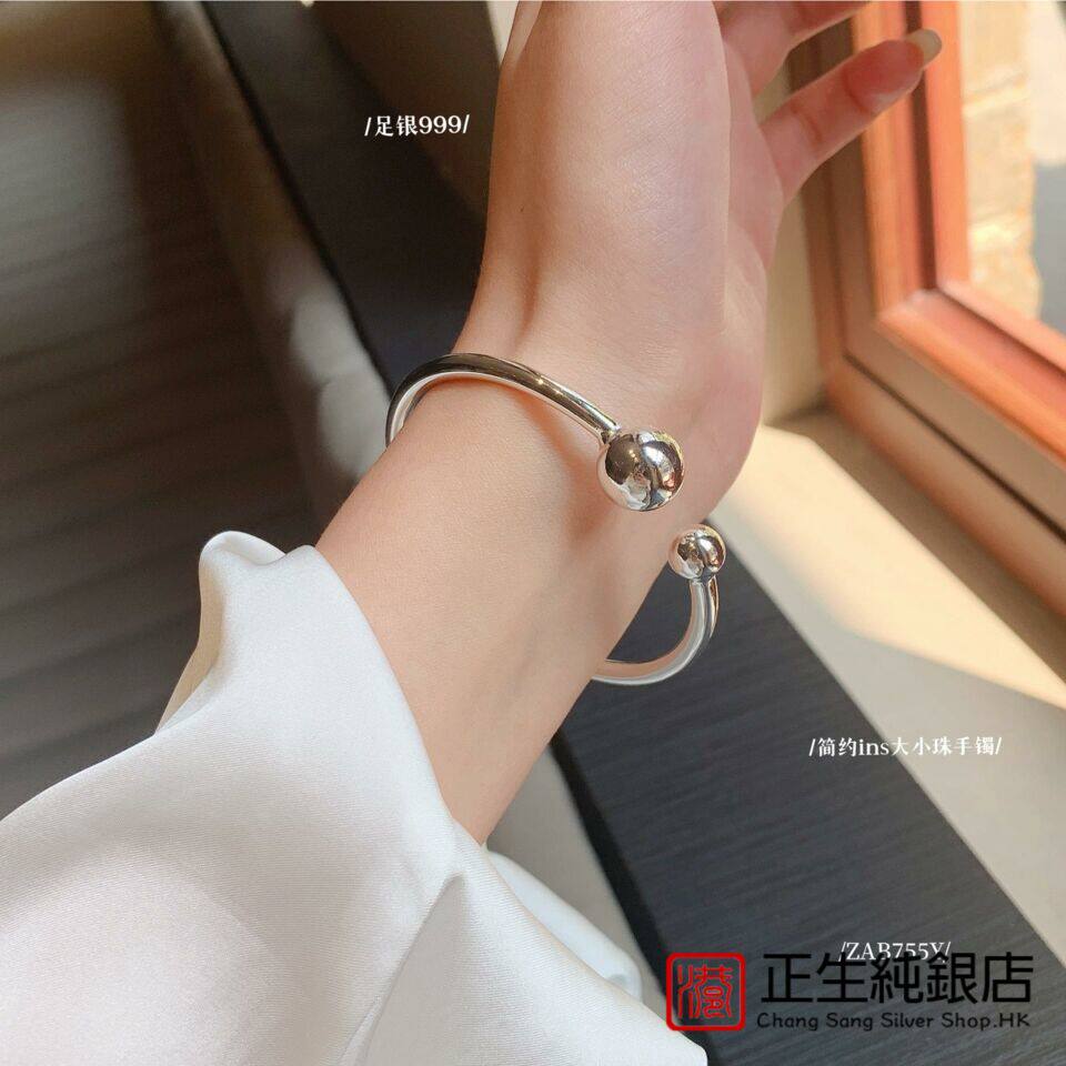 香港正生有求必应999足银镯子小众设计韩版ins大小球时尚开口纯银