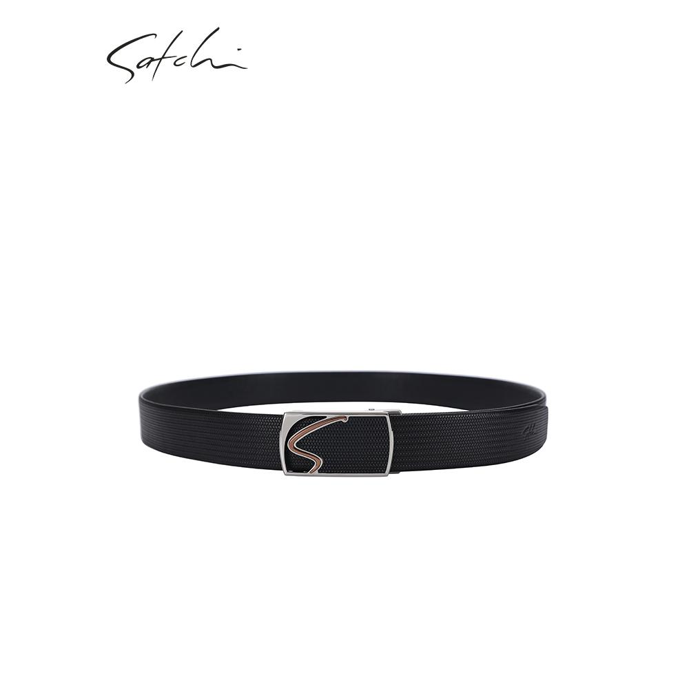 沙驰皮带男头层牛皮商务不锈钢平滑扣腰带年轻人正装编织纹裤腰带
