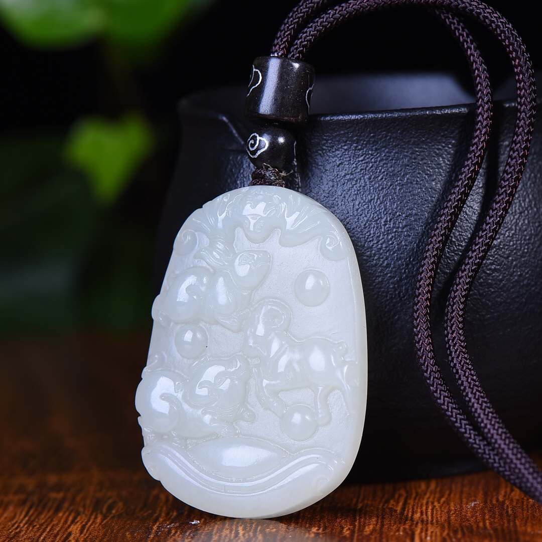 新疆和田玉羊脂玉白玉青白玉三合生肖玉石吊坠男女款挂件玉坠玉佩