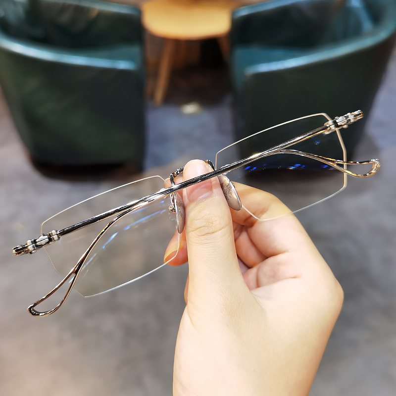简丹萝心无框近视镜潮钛架超轻男女时尚斯文败类多边素颜平光镜