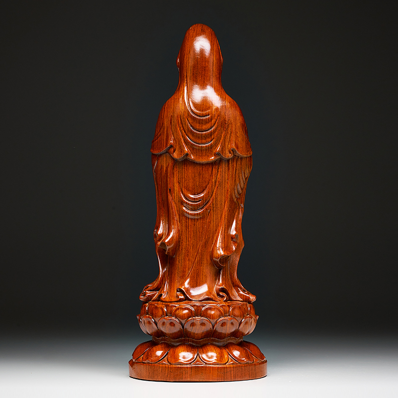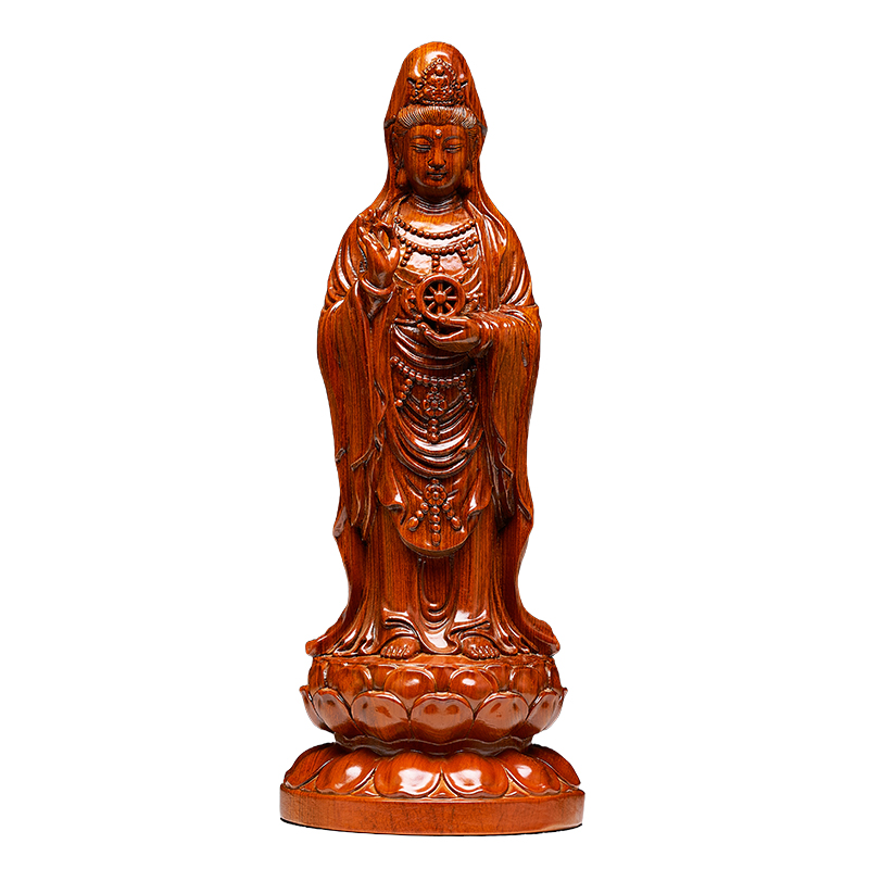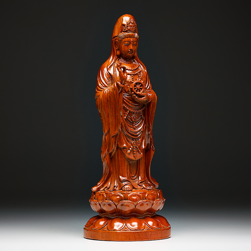 花梨木雕观世音菩萨观音佛像家用客厅桌面站莲观音像家供实木摆件
