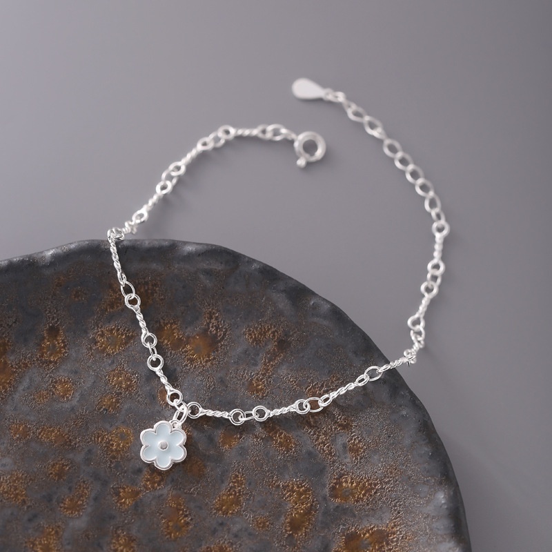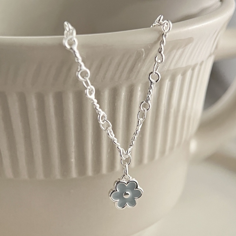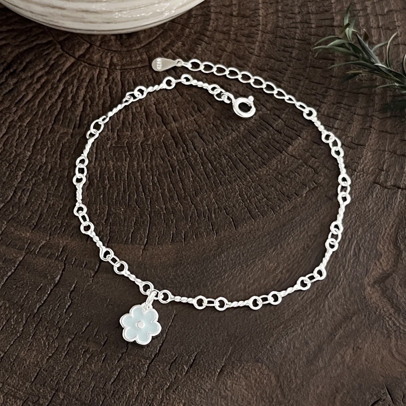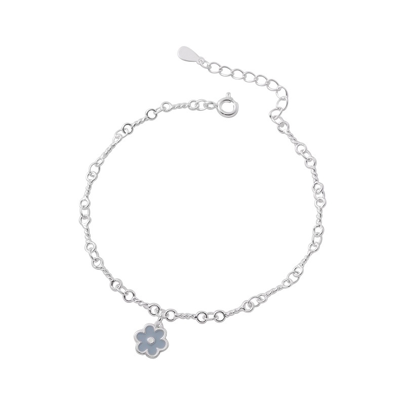 美汝仙 纯银蓝色滴油花朵手链女简约森系甜美小清新气质小花手饰