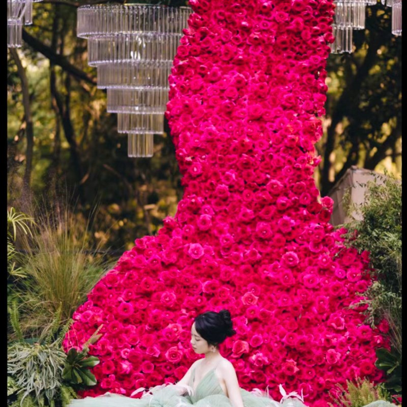 极速玫瑰爱心背景板m 情人节日红色花墙拍照道具店铺打卡装饰活动