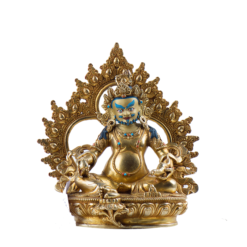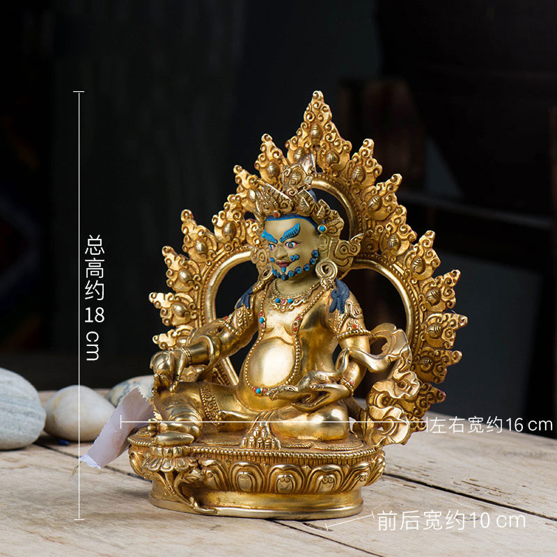 《黄财神铜像》乔迁新居桌面摆件尼泊尔手工6寸全鎏金中式藏巴拉