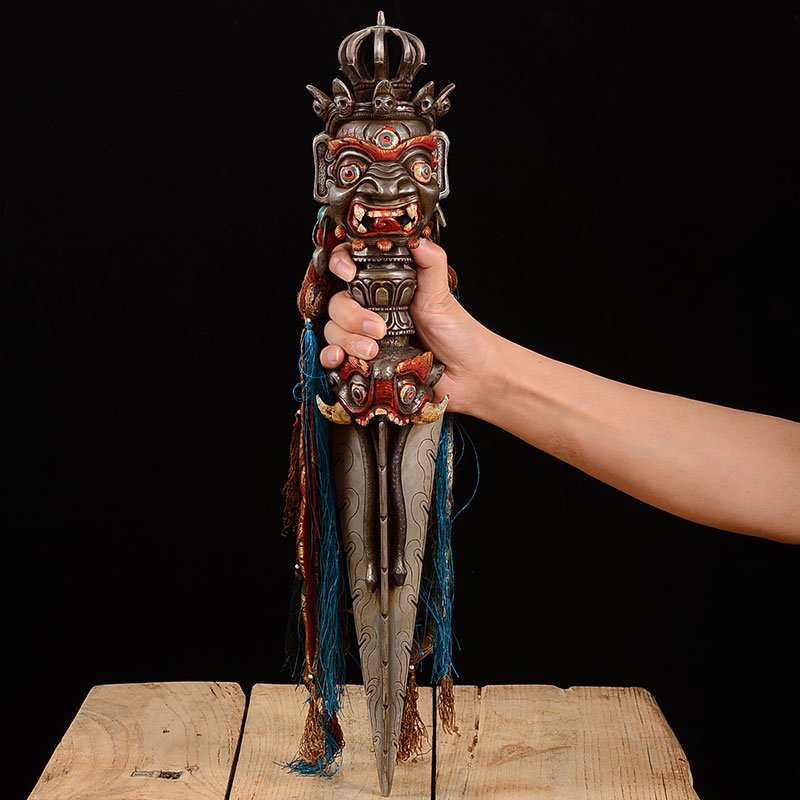 金刚橛带底座尼泊尔手工做旧铁九股普巴金刚橛现代摆件
