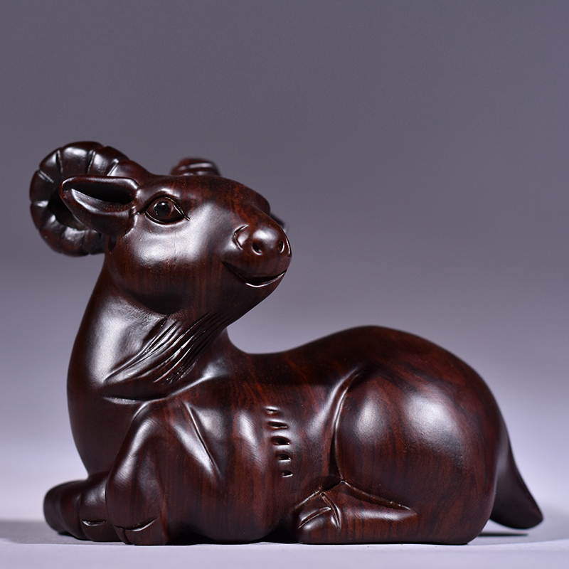黑檀木雕羊摆件三合十二生肖木质羊工艺品红木家居客厅属羊装饰品