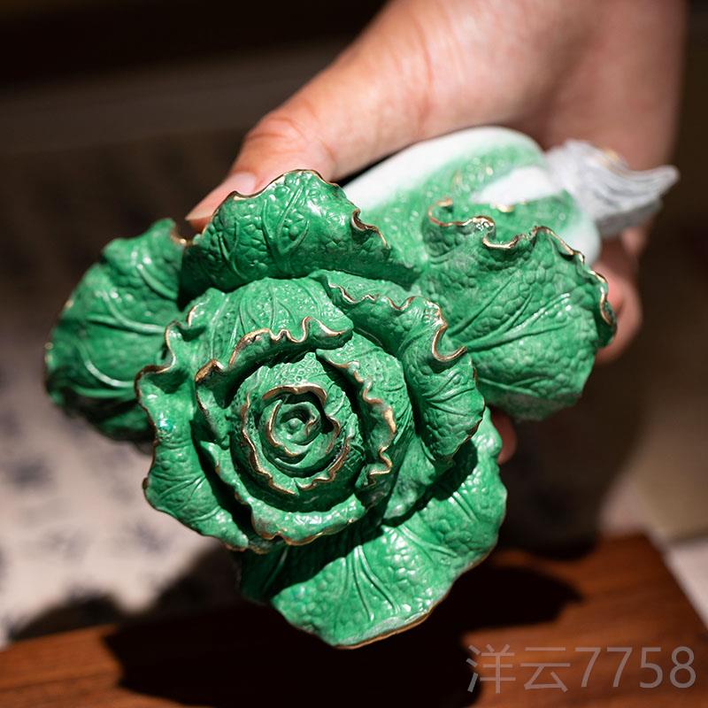 高档朱炳仁工铜百财聚来铜雕艺品客厅办公桌面装饰白菜 摆室件
