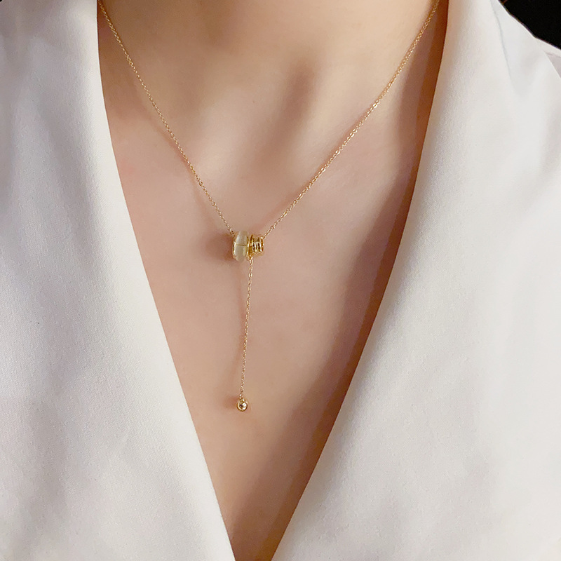 韩版轻奢精致感猫眼石滚轮项链小众设计感时尚个性气质锁骨链