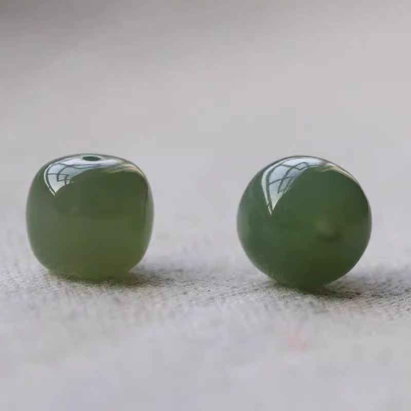 天然和田玉老型珠散珠冰种湖水绿桶珠文玩配饰diy手链配珠锁骨坠