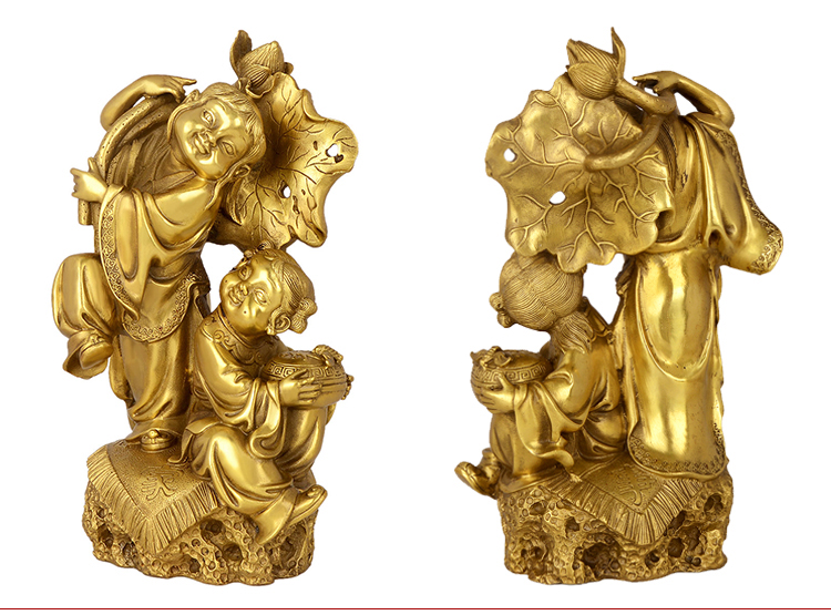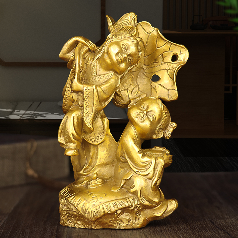 黄铜和合二人摆件卧室夫妻和睦新房小孩子饰品结婚礼品