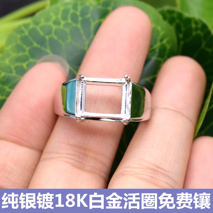 长方形男士戒托活圈925纯银男款戒指空托18K白金钻戒银托免费镶嵌