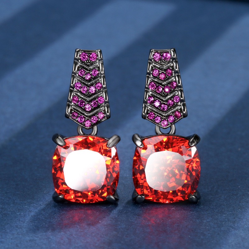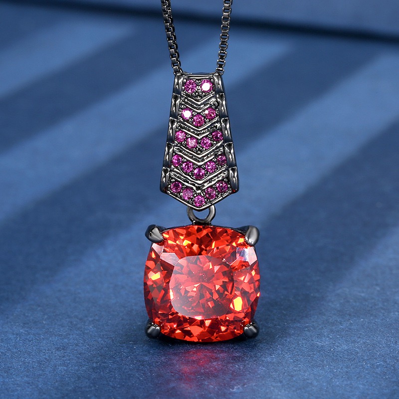 新款铜镀枪黑色仿彩宝镶钻吊坠女款项链橘红色仿水晶耳环开口戒指